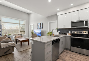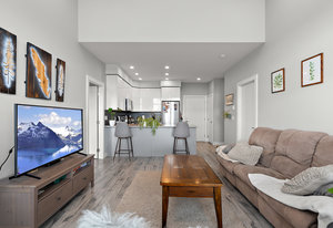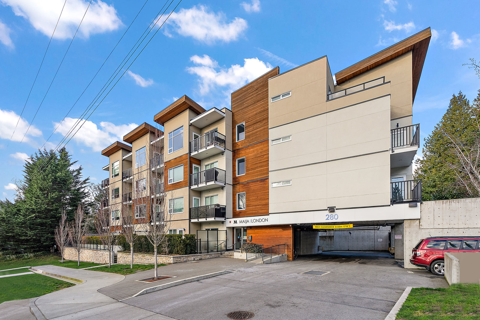 Welcome to The Maija London; a 37 unit building at 280 Island Highway. This home boasts stunning hardwood floors throughout, heated tile flooring in the bathrooms, and quartz countertops in the modern kitchen & bathrooms. This 2 bed, 2 bath home offers an open concept living area, vaulted ceilings, with the kitchen opening into the spacious living room. Thoughtfully designed, each bedroom and bath are on opposite sides of the condo to allow for privacy. Highlights include a gourmet kitchen, stainless steel appliances, and an island perfect for entertaining. This unit is situated back and away from Island Highway, offering a quiet space to call home. Additional features include in-unit laundry, ...