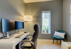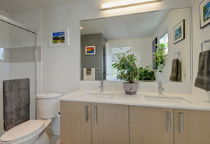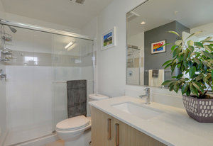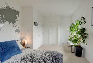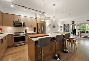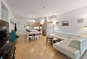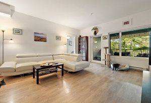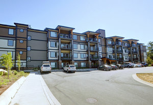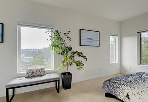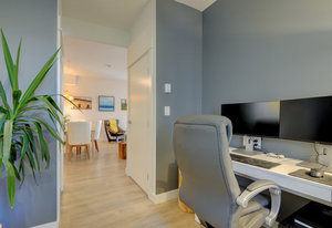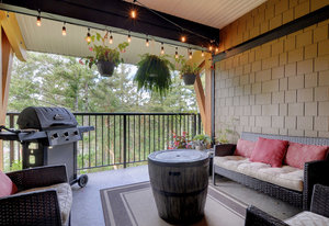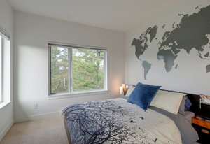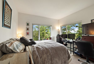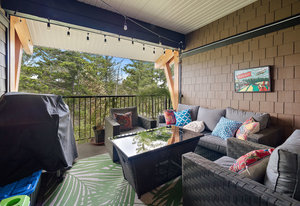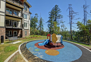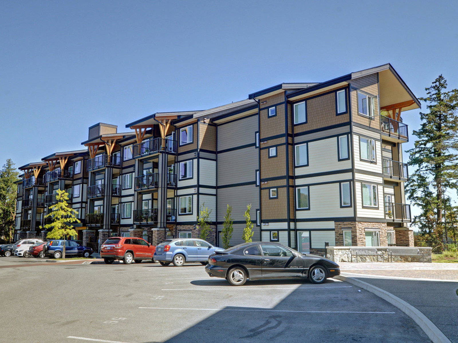 Welcome to your treetop paradise! Come home to this spacious top-floor end unit, the most desirable suite in The Coho. With the largest floorplan in the building (1,130sqft), this 2 bedroom plus den/office, 2 bathroom open-concept condo offers plenty of space with 9 ceilings, windows on three sides and only one shared wall. Every window has a scenic view of nature. You will especially enjoy the 150sqft private outdoor balcony oasis, overlooking peaceful views of the wooded property with plenty of room for your patio furniture and BBQ. The master bedroom has a walk-in closet and a magnificent 4-piece ensuite with double sinks. The separated second bedroom with large windows is ideally located for privacy and guests, adjacent to the second 4-piece bathroom. The sleek designer kitchen combines elegance and functionality, blending quartz countertops with a full new stainless appliance package, a breakfast bar island, quality lighting and convenient soft-close cabinetry. The in-suite laundry is equipped with a new full-size washer and dryer. The den/flex space off the main living area makes an ideal work-from-home office space or home gym! The Coho 2 (290 Wilfert) was built in 2015. This well-managed complex is situated on over 5 acres of private and treed landscape in View Royal. Includes secure underground parking for 2 vehicles, 2 storage lockers, plenty of ground-level visitor parking. Pets (no size restrictions on dogs) and rentals allowed. Guest suite and multi-purpose room. Close to all amenities and transit, easy access to downtown and Langford