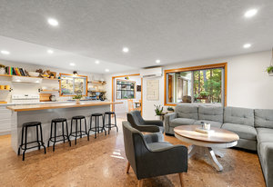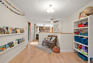 Your private hideaway awaits! Nestled on a quiet cul-de-sac, this 1.4-acre property backs onto a forested oasis & the Galloping Goose Trail. Perfect for families, this nearly 3000 sq/f home offers 6 bedrooms, a bright open-concept living/dining space w/ skylights, a modern kitchen w/ oversized island, upper floor family room w/ built-in library wall, huge playroom & dedicated office area in the primary suite, plus huge lower floor rec room w/ private entry, 1 bedroom & roughed-in bath (suite potential!). Outdoors, sprawling decks overlook the flat grassy yard & forest backdrop w/ stream, charming picnic & fire pit area, kids tree fort, chicken coop & veggie gardens. Cozy up ...