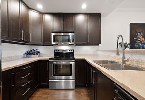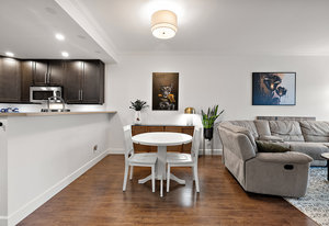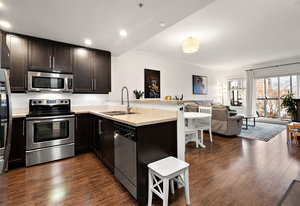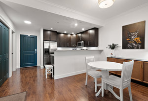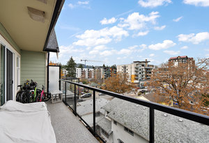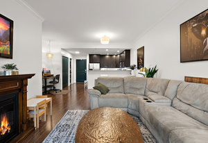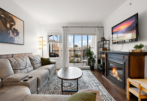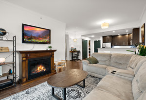 Top-floor living at its best! This bright and beautifully maintained 2-bedroom condo offers impressive natural light, added privacy, and elevated views. The open-concept layout features a spacious kitchen with stainless steel appliances, rich cabinetry, and a breakfast bar that flows into the inviting dining and living area—complete with a cozy electric fireplace and access to the sunny balcony. The generous primary bedroom includes ample closet space and a clean, modern ensuite. A second well-sized bedroom is perfect for kids, guests, or a home office. Enjoy in-suite laundry, a large storage room, and thoughtful touches throughout. Step outside to a covered balcony ideal for morning coffees ...