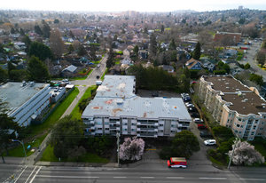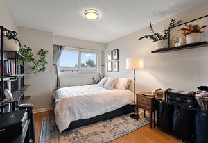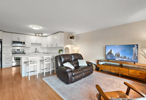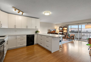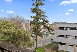 Welcome home to this beautifully updated, bright and spacious TOP floor condo in a central location next to amenities, major bus routes and 4 min to Camosun College & 8 min to UVIC. You'll love the massive open concept kitchen with lots of storage and a large peninsula as well as the bathroom reno which were both done in 2019. Enjoy laminate flooring throughout, a large balcony on the quiet side of the building for your morning coffee, a storage locker and parking stall. The proactive strata takes great care of the building with a new roof (2024) and new windows amongst many other forms of maintenance. Enjoy a community feel with a large games room, work shop and 2 levels of shared laundry. Located steps away from the Hillside Mall complex, Thrifty Foods, Walmart, restaurants, shopping and more, this condo is easily accessible to major bus routes. With pride of ownership evident throughout, this great unit is ready to welcome new residents.