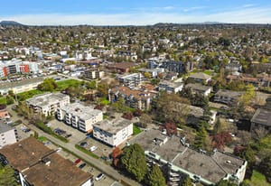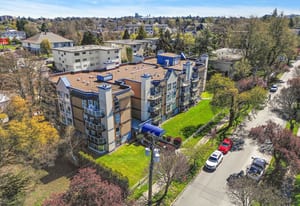 Quiet, bright, and private top-floor corner suite nested into Quadra Village. Built in 1992 and fully remediated in 2005. This suite offers updated kitchen and bathroom with stainless steel appliances and full size in-suite washer and dryer. The unit comes with a separate storage locker a secure underground parking space and the strata fee includes natural gas and hot water. In addition, this building is pet friendly including allowing one dog of unrestricted size. Great location only steps away from the Quadra Village and all amenities including groceries, restaurants, coffee shops and only minutes from downtown. A peaceful, move-in-ready home in a very central and connected neighbourhood. Opportunity knocks, will you be the lucky one?