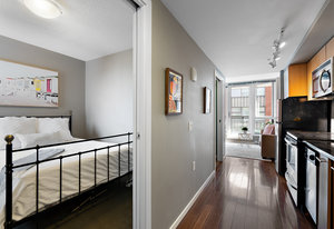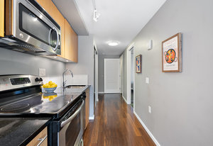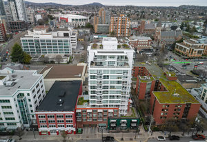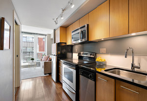 The thoughtfully designed interior features granite countertops, wood floors, stainless steel appliances, and in-suite laundry. Enjoy your private balcony, plus the added benefit of a storage locker and bike locker.