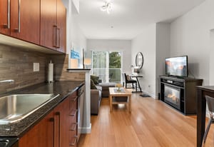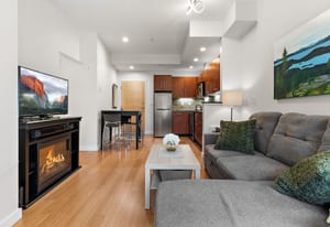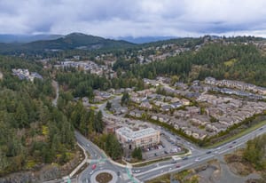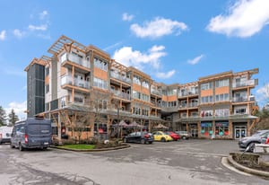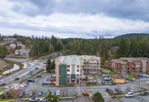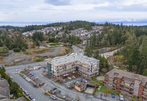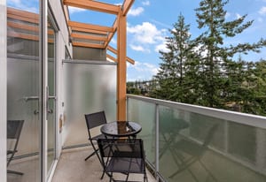 Come take a stroll through Latoria Walk, an eye-catching building on the western edge of Colwood. This top-floor unit has southwestern exposure off its covered patio. So, even with Veterans Parkway on your doorstep, the quiet patio faces a wild stretch of the Westshore. Olympic View Golf Course is the immediate neighbour, with Witty’s Lagoon and the Sooke Hills beyond. Other features include nine-foot ceilings; a sleek, four-piece bathroom; in-suite laundry; electric fireplace; bamboo floors; and stylish finishings throughout. The well-managed strata provides secure, underground parking as well as a storage locker on the same floor. Latoria Walk’s lower level houses a convenient pharmacy and Red Barn Market grocery store (known for its range of tasty, in-house offerings). This location puts you just twenty minutes from events in downtown Victoria or from adventures in East Sooke Park. Closer to home, you can enjoy Esquimalt Lagoon, Thetis Lake, and endless amenities of the Westshore.