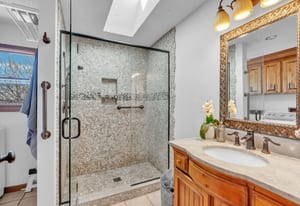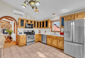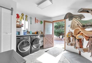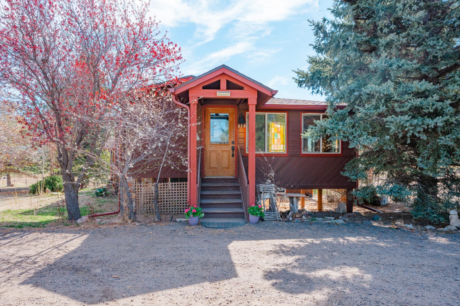 Close-in equestrian property tucked in a quiet cul-de-sac with mature landscaping and a gated entrance. Newer windows and skylights, roof, garage doors, driveway, updated bathroom, light fixtures, interior paint, and a newer deck. 36x36 four-stall barn is fully insulated and heated, featuring a heated tack room, newer water heater, washer & dryer, and heated wash rack. Above the barn, is a loft studio/guest suite with a full kitchen. The property is well-equipped for equestrian use with pipe fencing, professional arena with good footing, multiple loafing sheds with paddocks, and two 8x40 storage containers. Seller-owned solar panels. Truly a turnkey opportunity!