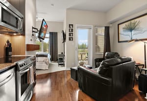 Come pay a visit to this stylish, top-floor condo in the top-rated Bear Mountain Resort Community. The scenic location puts you steps away from an 18-hole golf course, tennis courts, county club, spa, salon, physio clinic, playground, as well as boutique shops and services. This one-bed unit in the pet-friendly, recently updated St. Andrew’s building makes the most of its small space. Features include hardwood floors; over-height ceilings; discrete, in-suite laundry; electric fireplace; and covered patio with treed views. A comfortable wallbed lets your bedroom double as an exercise area or office. The unit comes with secure, underground parking and standalone storage locker. Nearby, you’ll find hiking trails for all skill levels. Goldstream Provincial Park, Sooke Foothills, and the Finlayson Arm await land-or-sea adventurers and boast spectacular scenery. When errands call, you’re just a ten-minute drive from Westshore Town Centre or twenty-five minutes from downtown Victoria.