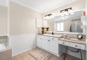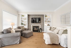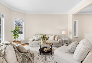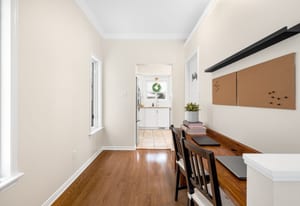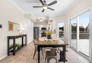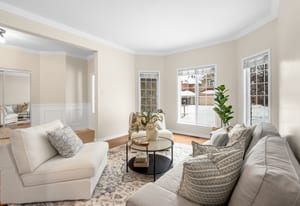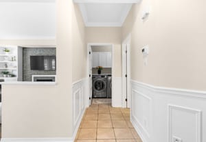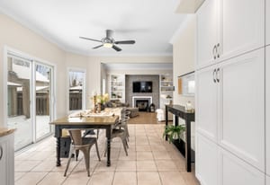 Outside, the professionally landscaped backyard is your private oasis: in-ground saltwater pool with updated liner, pump, filter, and chlorinator; a covered patio with awning; outdoor seating with fire table; and beautiful interlocking brick.