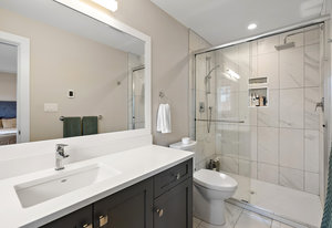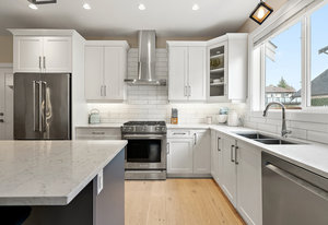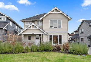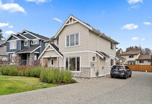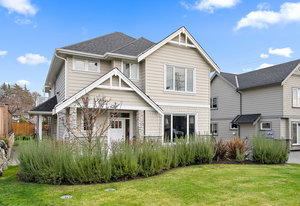 Located on a quiet culdesac in Saanich East, amongst beautiful brand new homes, awaits this stunning 2019 built 3 bed, 4 bath home with separate legal above garage bachelor suite. Boasting open concept living on the main level, with a spacious living room, dreamy kitchen with gorgeous quartz countertops, gas cook top, SS KitchenAid appliances, and dining room with double French doors to the patio. This lovely family home offers 3 bedrooms and 2 bathrooms upstairs with an adjoining, above garage bachelor suite complete with 3 pc bathroom, kitchen, separate laundry and its own separate entrance. Other amazing features include beautiful hard wood flooring, 9' ceilings, heated flooring in the ...