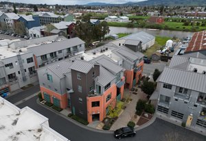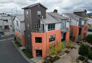Ever dream of living in a big city loft but want to enjoy the charms and joy of living in the heart of Petaluma? Then welcome home to Celsius 44! A glass entry greet you into a bright space with gorgeous flooring found throughout the home. Stairs lead to the 2nd level with the primary suite, complete with private balcony, electric fireplace heater, built-in shelving, deep soaking tub, walk-in closet, and spacious shower. A laundry closet, access to stairs down to an oversized 1-car garage, sitting area, and under-stair storage complete the level. The top level is stunning with open-concept kitchen with Wolf wall oven, counter-depth refrigerator, and large island with gas cooktop and bar seating for the perfect place to gather. Or get cozy in the family room with vaulted ceiling, light-filled windows, and a gas-insert fireplace. Fresh air is found on the private corner balcony. Living areas include a half bath, full bath, and two guest rooms with access to another balcony! Ready to impress? Take the spiral stairs up to your own bar built with reclaimed materials and featuring two refrigerators, a tap, and incredible hill views! Stay cool inside with the central A/C or venture to downtown Petaluma mere moments away for all the fun this town has to offer!