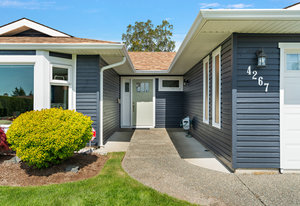 Welcome to 4267 Panorama Drive! This beautifully updated 3-bedroom, 2-bathroom rancher in the sought-after High Quadra neighbourhood offers stylish, one-level living in a prime location. Inside, you'll find a thoughtfully renovated interior featuring a spacious kitchen with quartz countertops, updated cabinetry, and newer appliances. A cozy gas fireplace anchors the living area, while a heat pump provides efficient year-round comfort. Notable upgrades include a refreshed ensuite, vinyl windows, a new front door, and fresh exterior paint. Nearly every aspect of this home has been tastefully improved. Outside, enjoy a private, fenced backyard oasis with a professionally landscaped ...