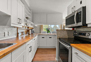 This unique two storey, three bedroom condo is arguably the best unit in the building! The unit is a quiet, top floor home filled with sunlight - soak up the evening sun on your private, west facing deck. Inside, you’ll find thoughtful upgrades throughout, including a chef’s kitchen, plenty of additional storage, and the unit is fiber optic ready. The building is cat and small-bird friendly, BBQs are permitted, and the neighbours are quiet and respectful. Enjoy a designated parking space, secure storage for bikes and gear, and convenient access to neighbourhood amenities. Just a 5 minute walk to Macaulay Beach and Saxe Point Park, this home is also close to schools, restaurants, shops, ...