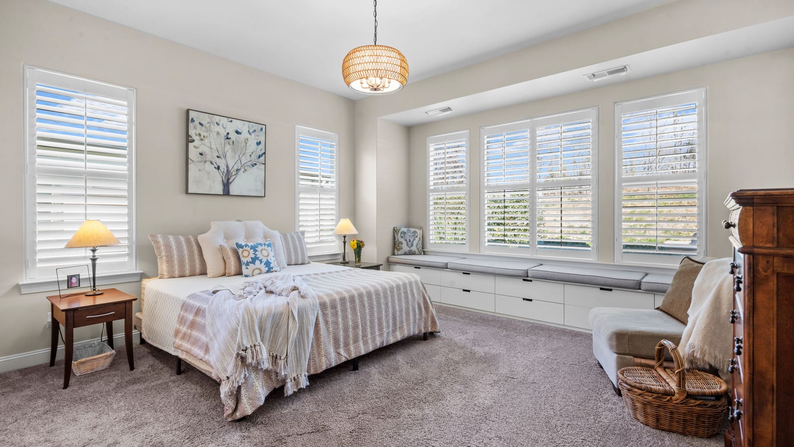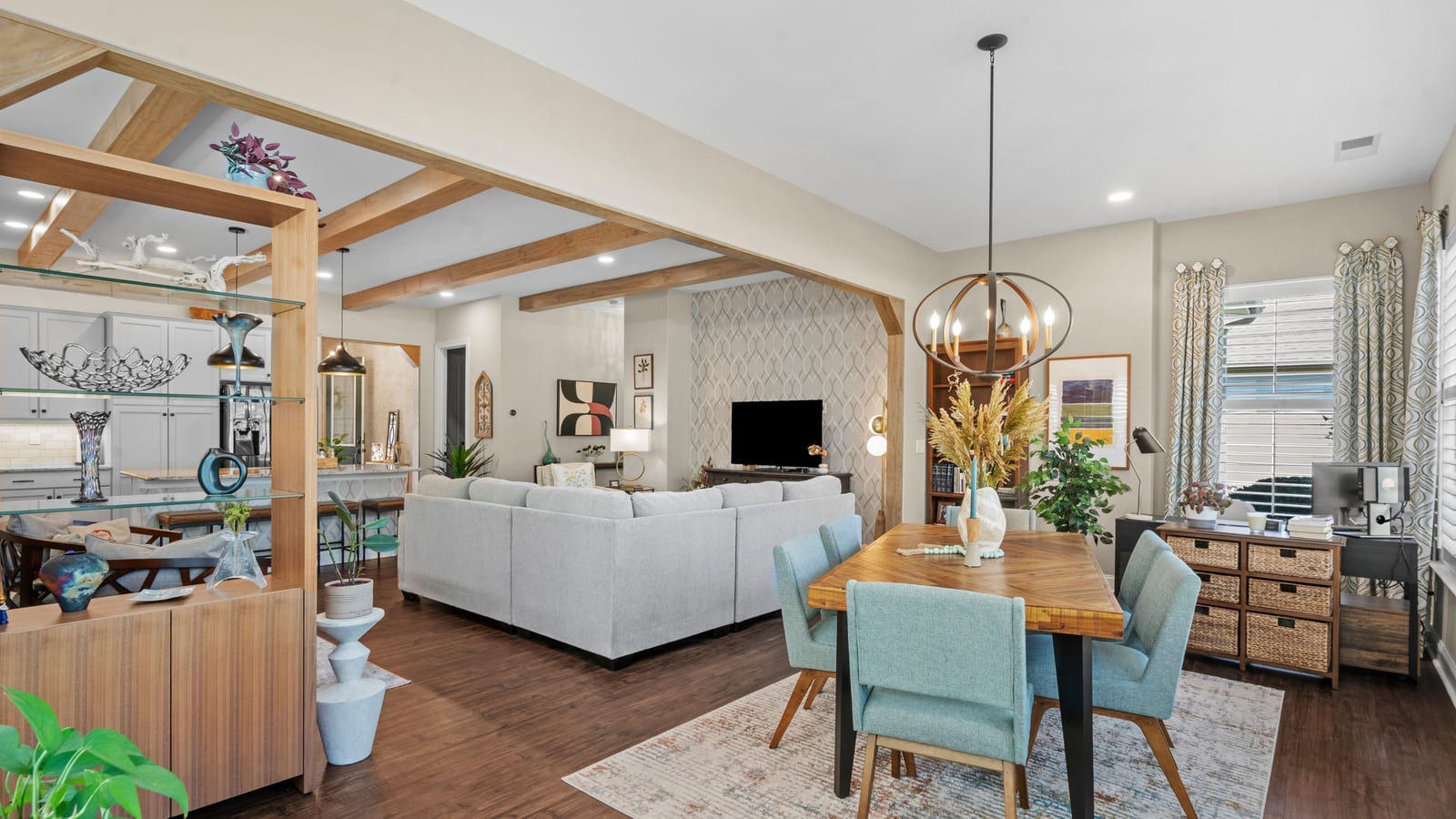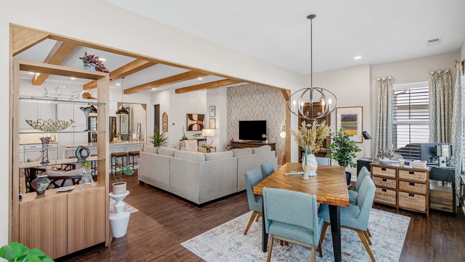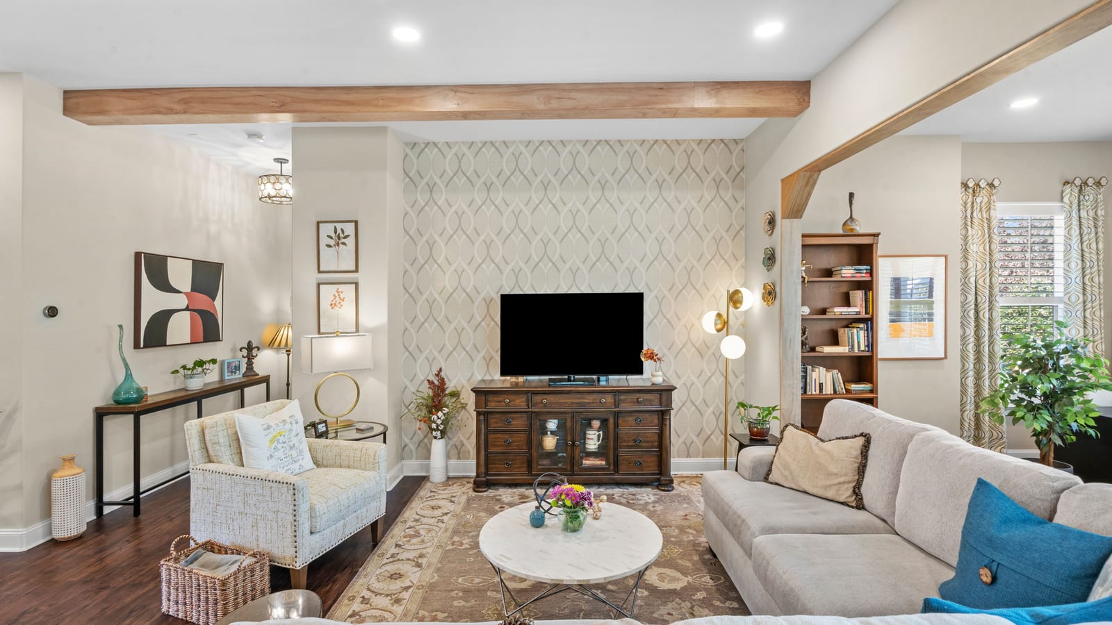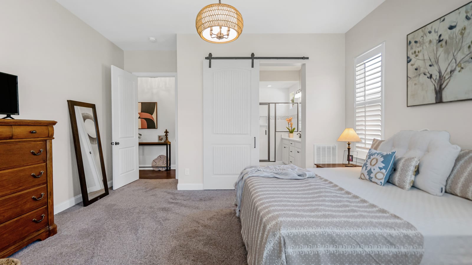 Out of a magazine this completely turn key craftsman style bungalow with sunroom is waiting for you. This home features an amazing outdoor entertaining area with built in grill station, water feature, raised planter beds for the gardening enthusiast with seating wall and patio with covered louvered pergola extending in and outdoor entertaining areas in a peaceful, quiet, natural setting. Custom wall treatments and drapery, plantation shutters, low maintenance LVP flooring and wood beams highlight the main living areas. Upgrades include: 10ft. ceilings, 8'doors, under/over cabinet kitchen lighting, tile back splash, solid surface counters, roll out drawers for easy access, large island with additional storage and decorator lighting. Primary suite features bump out bay window and a built in window seat for storage, ensuite bath with dual sink vanity, walk in closet and shower. Private split bedroom layout offers convenient drop zone storage and adjoining bath. Laundry room has additional upper and lower cabinetry with amazing counter work space. Finished garage with 4' extension. Great location on a cul de sac street with easy access to the community trails and the Twin Mills Club. Trilogy Membership includes Freedom Boat Club on Lake Norman plus award winning amenities.
