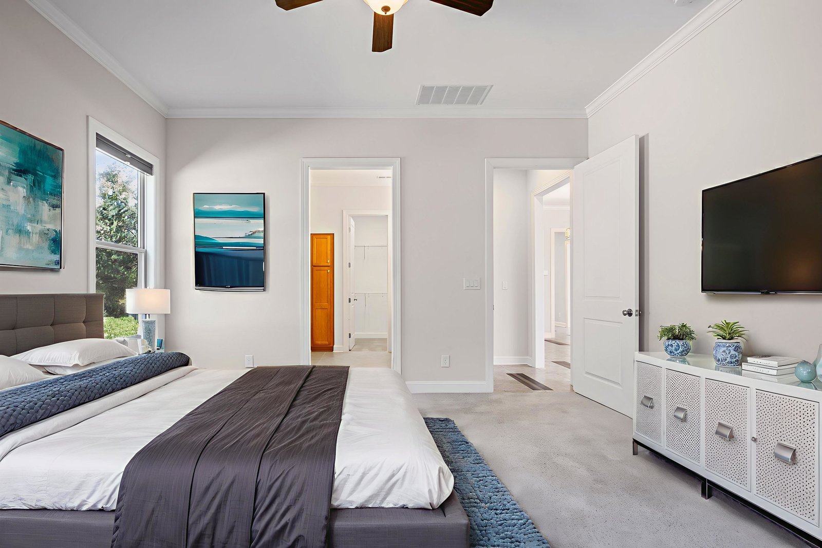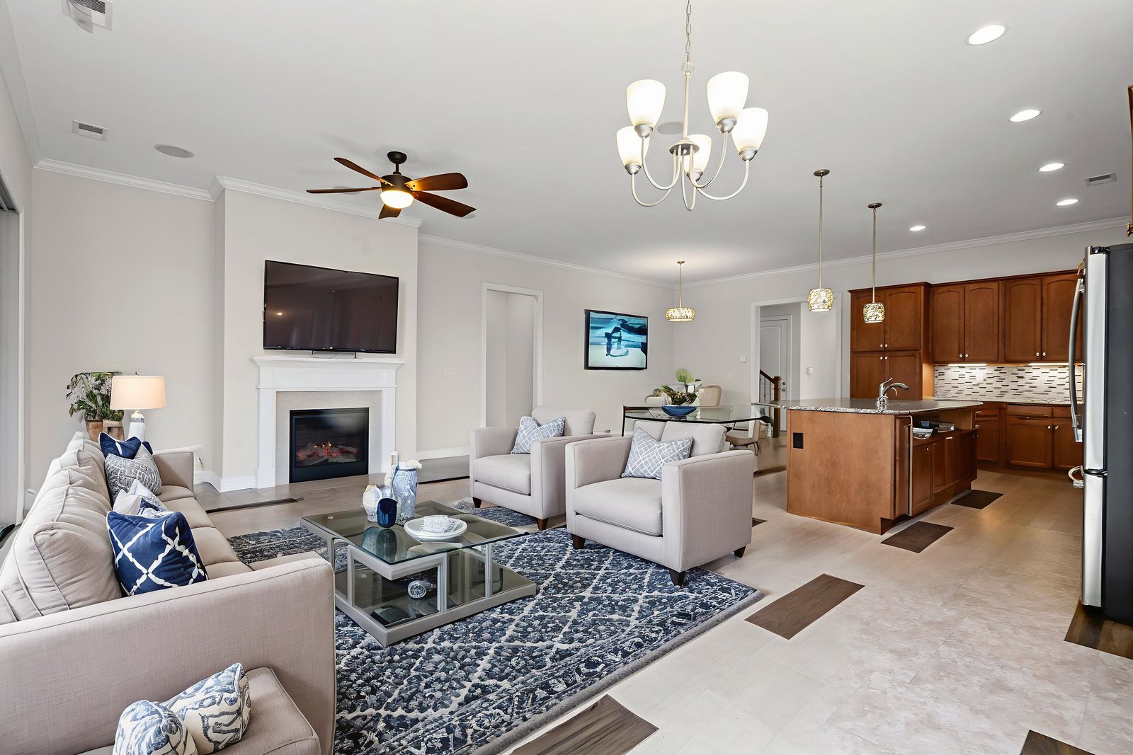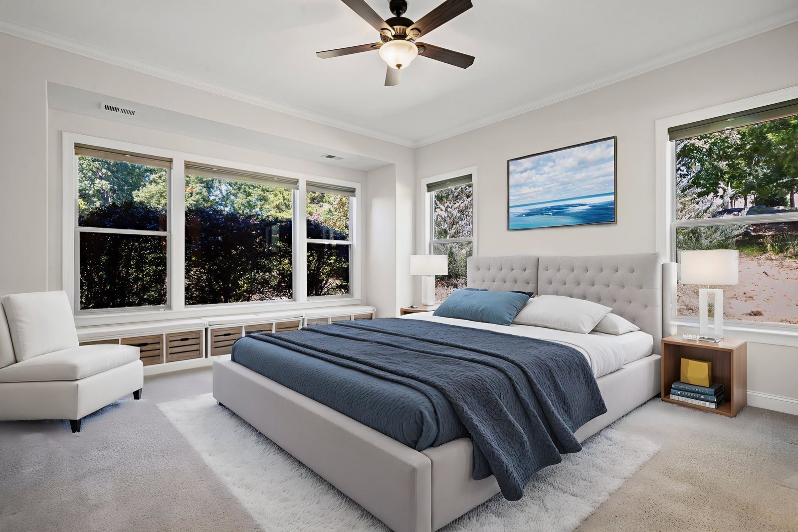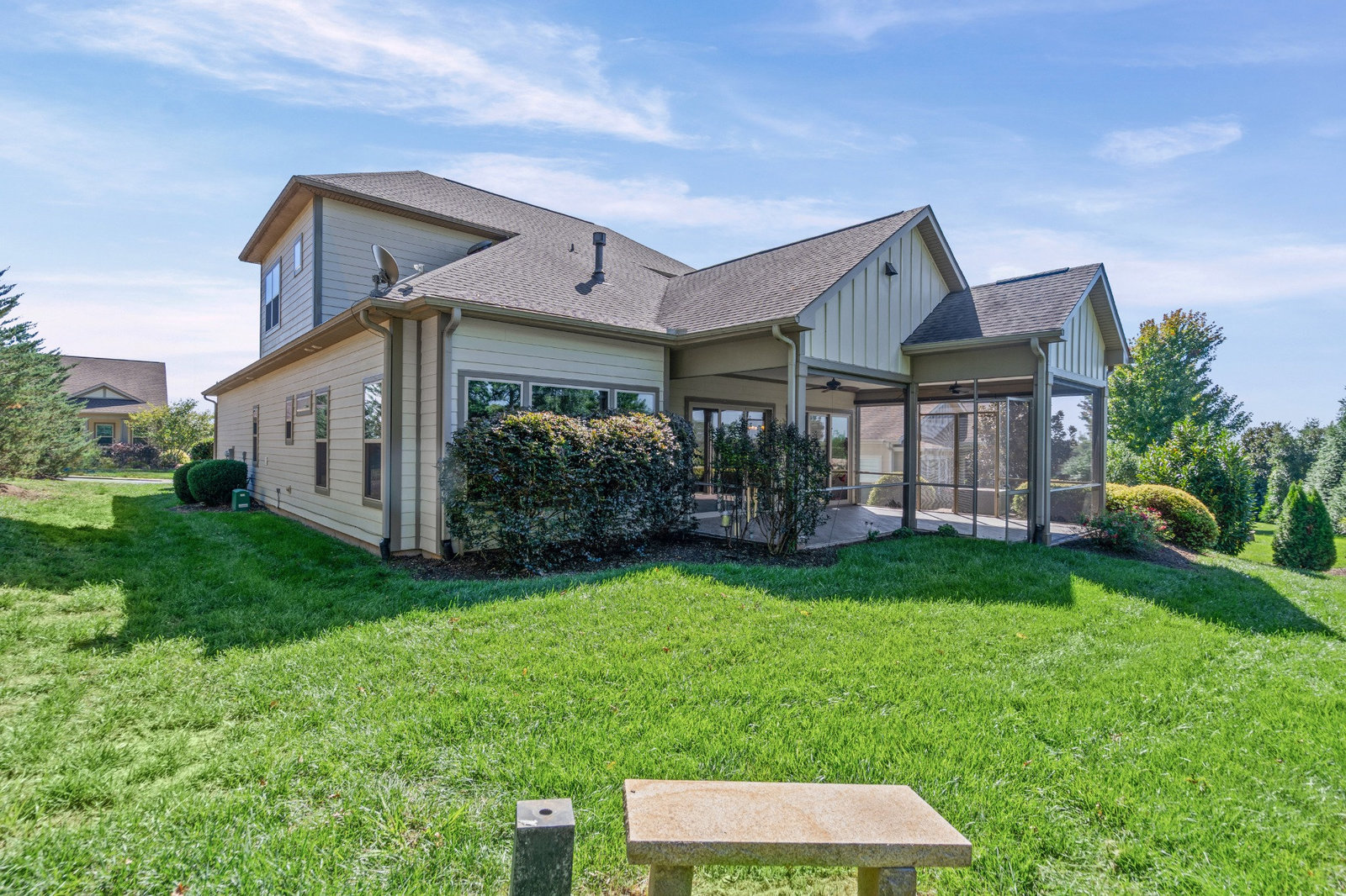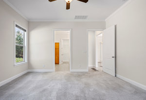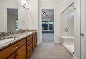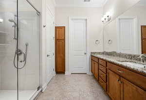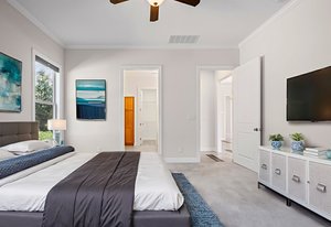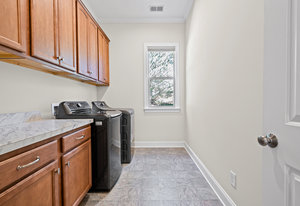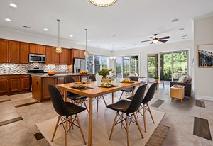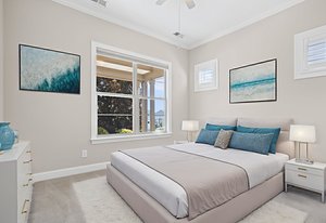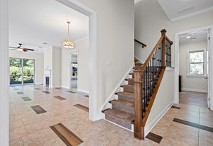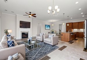 Take a casual stroll to the Twin Mills Club from your maturely landscaped exceptionally quiet and private lot that borders a natural common area on 2 sides. Interior has just been freshly painted. Master suite includes bay window addition with a window seat (wooded views) and ensuite bath with dual sink vanity, walk-in closet and tiled shower. 10ft. ceilings & 8ft. interior doors throughout the home. Fantastic storage in the eat-in kitchen which features granite counter tops, under cabinet lighting, center island/breakfast bar and SS appliances plus refrigerator. Great room is highlighted with a gas log fireplace and 2 rolling walls of glass opening to a large tiled screened Lanai with privacy shades adding extensive in and outdoor entertaining areas. Spacious secondary bedroom, flex space/office and adjacent bath on the main floor. Upper level includes a huge bonus room and guest suite with a full bath plus amazing walk in storage areas. Extended laundry work space has additional cabinetry and includes the washing machine and dryer. 2 car garage features a 4ft extension adding additional storage for all of your extra items that you just can't part with. Trilogy Membership includes Freedom Boat Club plus award winning amenities.