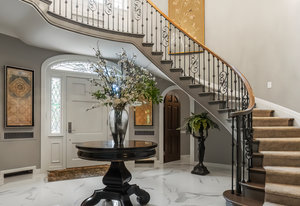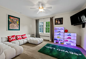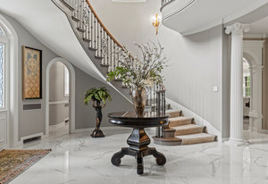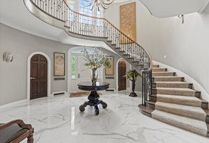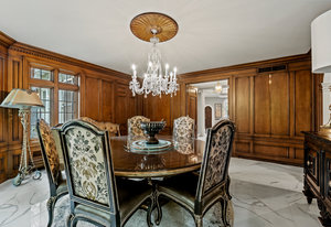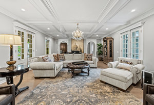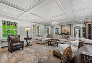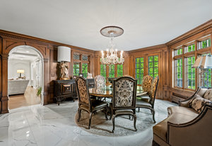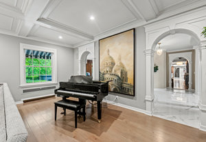 Built for elegance and comfort, the home offers 7 bedrooms and multiple living areas on every level. The main floor features custom walnut floors, two imported marble fireplaces, and a spacious great room with a state-of-the-art surround sound system and automated Lutron shades. The formal dining room has a hidden speakeasy bar, and steps away, you’ll find the bespoke wine and cigar hideaway.