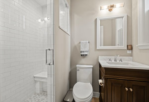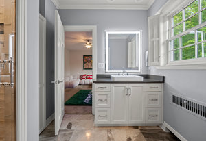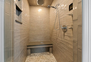 Upstairs, the primary suite is a true sanctuary. A rebuilt balcony, coffered ceilings, and heated travertine floors set the tone, while the spa-inspired bathroom offers a steam shower with heated benches and floors. Two additional custom baths feature quartz counters, rainfall showers, and imported ceramic flooring. A spacious bunk room accommodates 8+ guests, ideal for multi-generational living or extended stays.