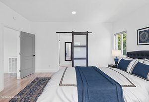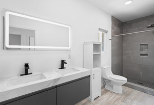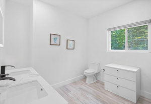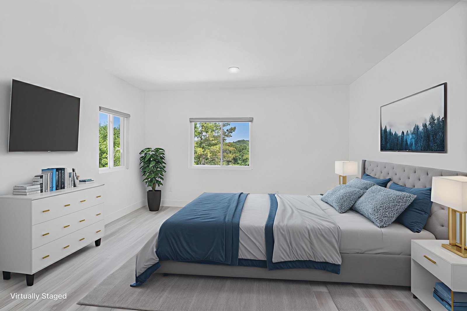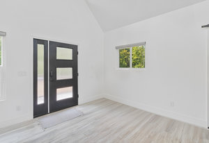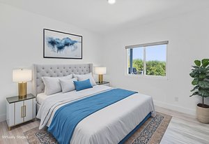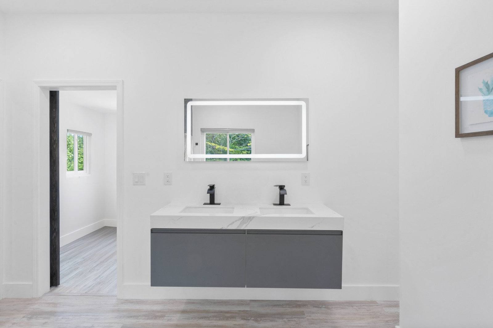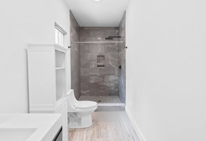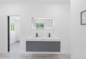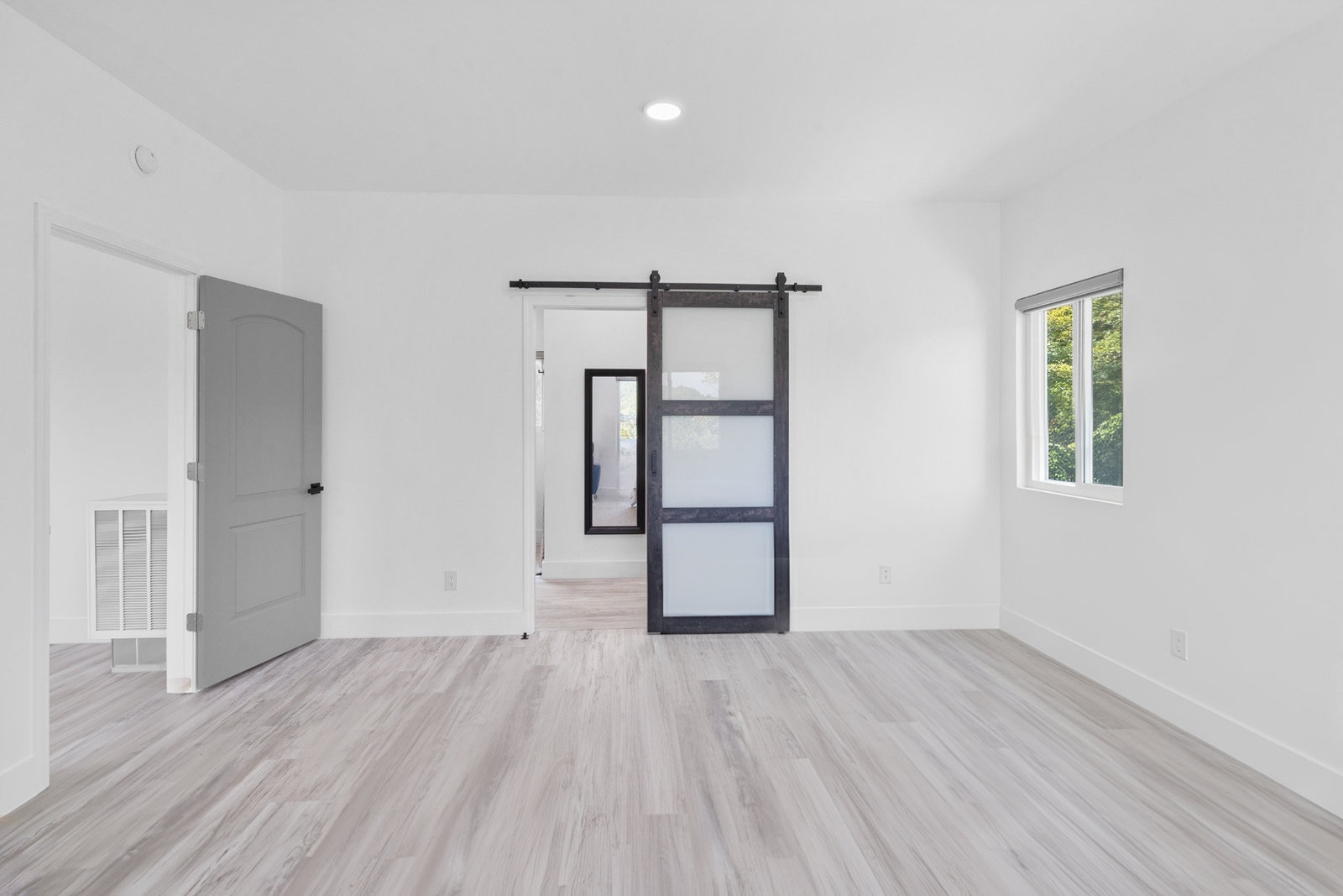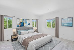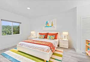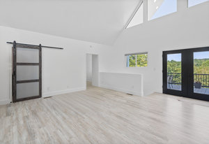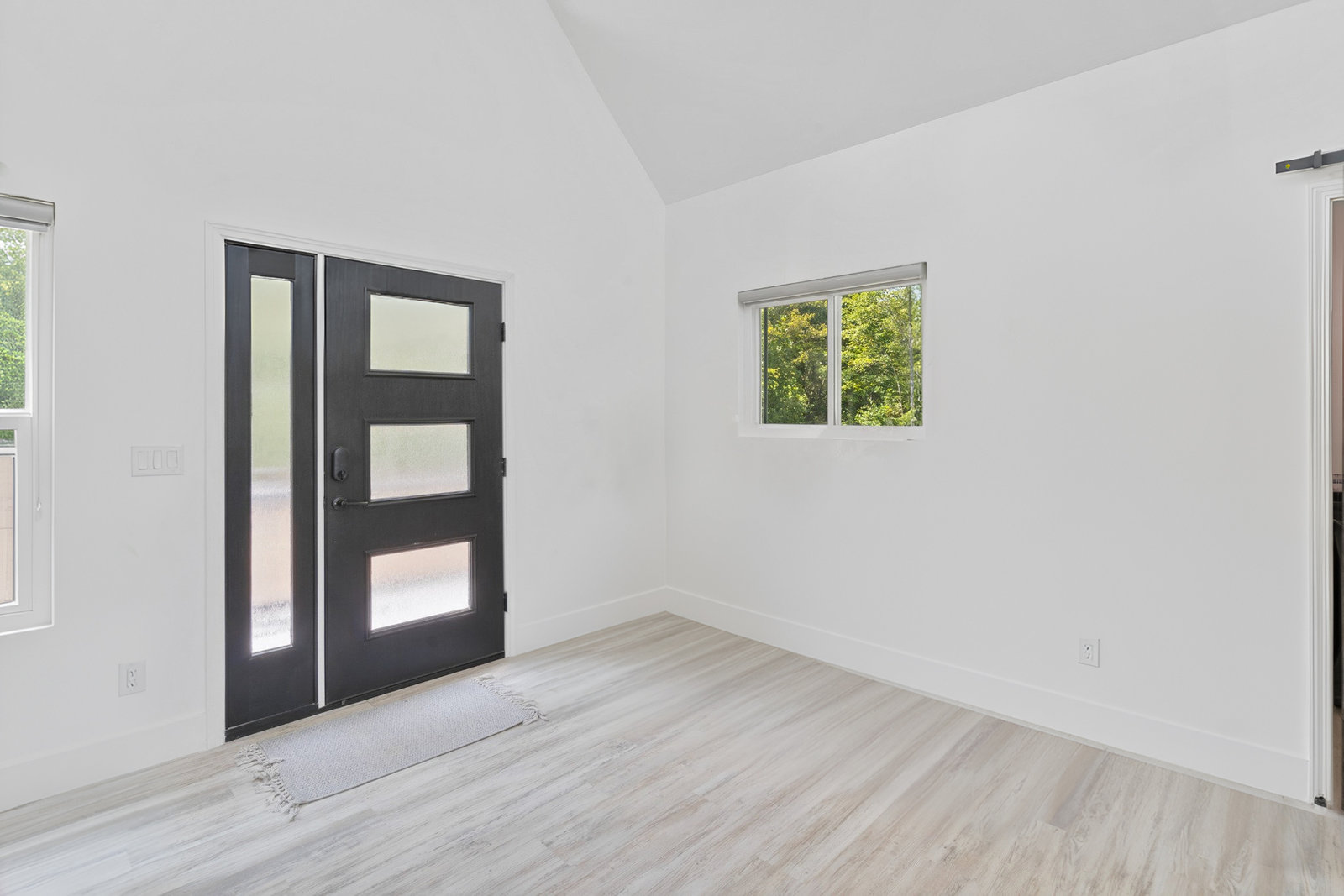 Inside, discover an airy, light-filled plan framed by dramatic triangular windows, a chef-inspired kitchen with solid quartz countertops and a massive extra-wide island—ideal for entertaining friends, family, or weekend guests in town for equestrian events. The spa-quality primary suite features an open-access tiled shower, sleek fixtures, and elegant finishes with defog mirrors for a touch of everyday indulgence.