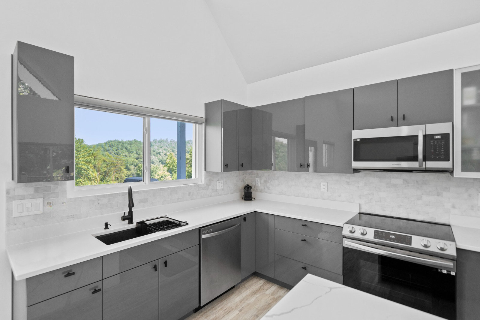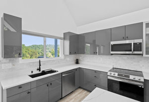 Set on 1.32 wooded acres with seasonal mountain views, this 3-bedroom, 2.5-bath home blends sophisticated contemporary design with the quiet beauty of nature and convenient access to shopping, dining, and I-40.
