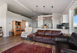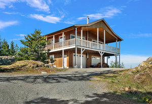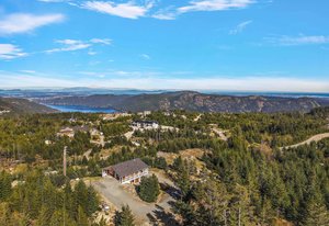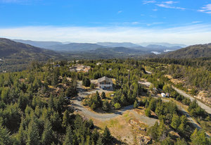 Directly overlooking Finlayson Arm, this 5-acre lot in the Cowichan Valley has unstoppable views. It's panorama takes in the Pacific Ocean, Shawnigan Lake, Mount Baker, the Olympic Range, and downtown Victoria. The small house combines a modern look with rustic charm. Occupying the ground floor, a two-car garage has been converted into an open living space with an additional kitchenette, guest room, and ensuite. While this clever conversion can be utilized in many ways, reverting to a garage would also be a sinch. Upstairs, you’ll find a cozy bedroom and adjoining bathroom. The kitchen, living room, and dining room let in ample light. Enjoy the scenery indoors or from your covered, wraparound SE facing deck. Those with plans to build have several sites to consider, making for many exciting possibilities. Current tenants on the grounds are a family of quails who hope to stay. Close neighbours include Spectacle and Shawnigan Lake, the Malahat Skywalk, and Sooke Hills Wilderness Trail.