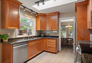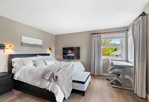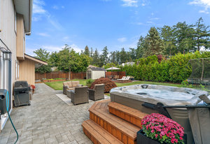 This delightful home in a great family-friendly neighbourhood sits on an incredible flat sunny 10,000 sq/f lot w/ gardens & mature landscaping - great for entertaining! Step inside through the living & dining area w/ new hardwood floors, leading to updated kitchen featuring a filtered water & instant hot water tap. The large family room off the kitchen offers a cozy gathering space. The main level also has 1 bed, 1 bath & laundry. Upstairs 3 more beds & 2 updated baths—both w/ heated tile floors. Enjoy the warmth of 2 gas fireplaces plus 1 electric in the primary bedroom. This home has a double garage, ample parking space for 6 vehicles & a fenced RV/boat ...