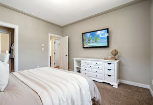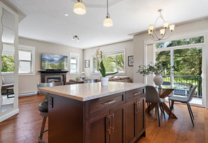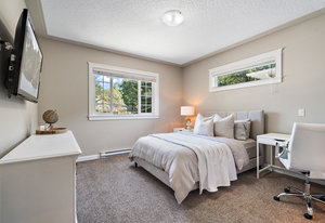 Welcome home! As you enter this quality built 2 level family home, you’ll notice the large entryway with 2 full closets and extra storage. Upstairs is complete with 3 full bedrooms, open concept kitchen, living and dining rooms with an electric fireplace. The kitchen boasts stainless steel appliances and quartz countertops. The extra large primary bedroom easily accommodates a king bed and has an en suite as well as a walk through closet. The other 2 bedrooms are spacious and filled with natural light. Enjoy the sunny balcony and backyard access from your dining room. The low maintenance yard has a new putting green and lots of space for your summer bbq parties or cozy dinners under the lights. The cherry on top of this fantastic home is a 1 bedroom suite with separate access. Oversized single garage with 4 car driveway parking. This location is unbeatable; 2 minutes to Thetis Lake trails and 5 minutes to Costco, restaurants and schools. Inquire today!