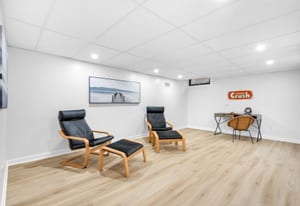 The lower level adds valuable living space with a large rec room, laundry area, and a convenient second bathroom, ideal for a home office, gym, or additional family space.