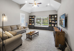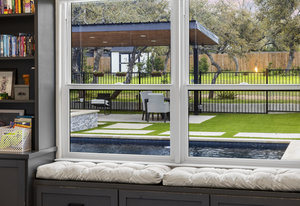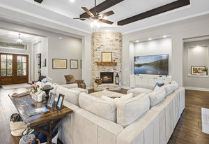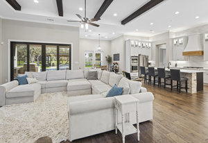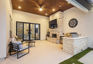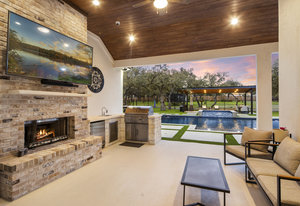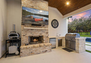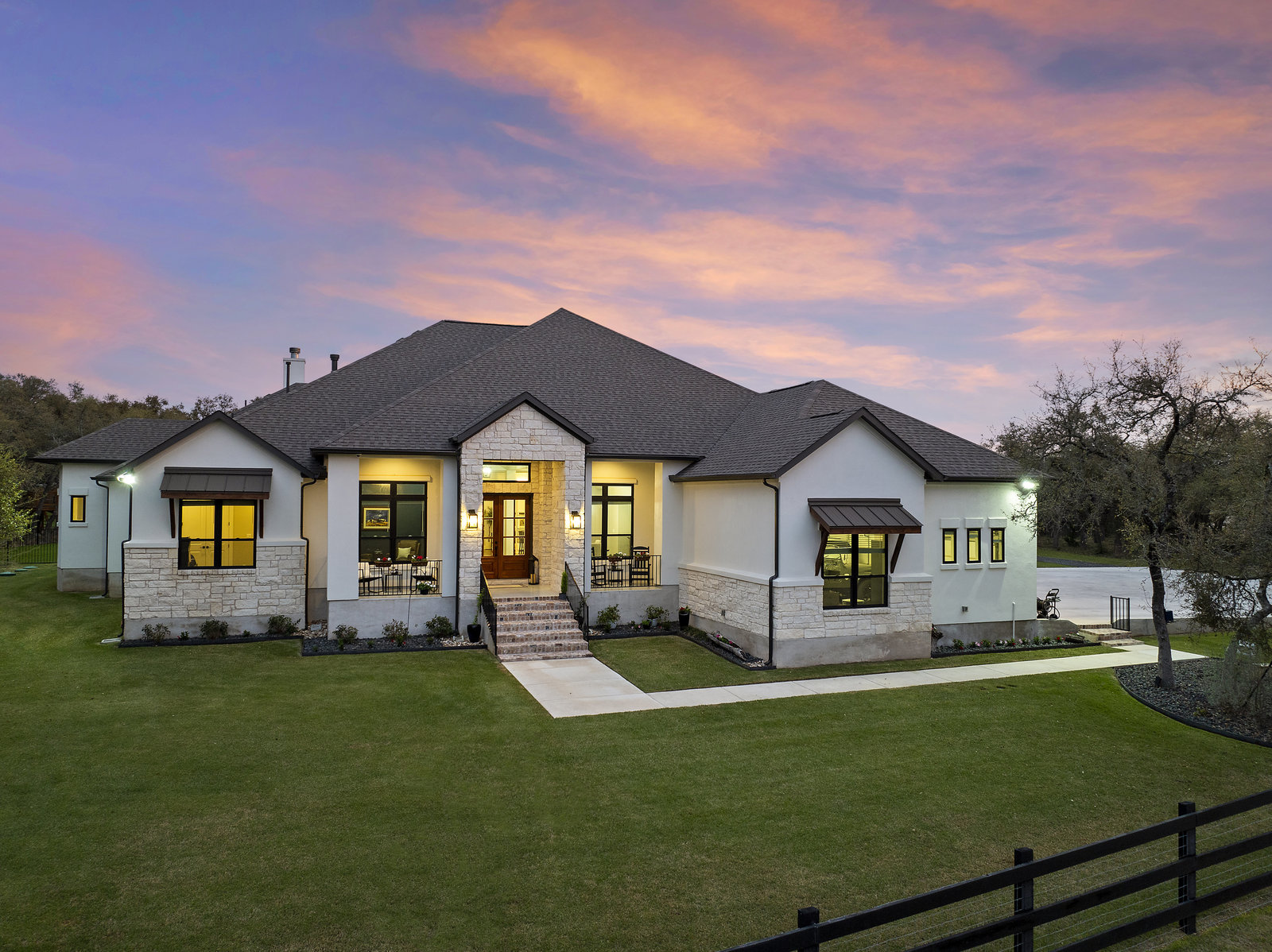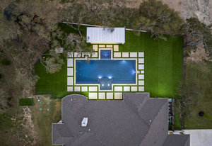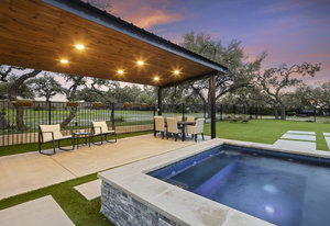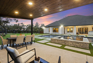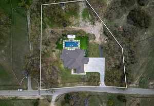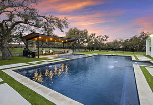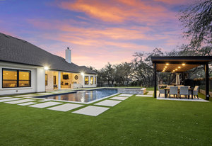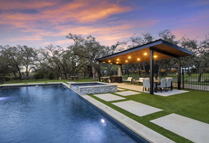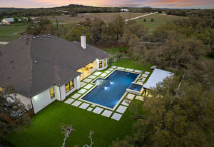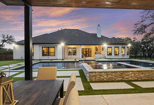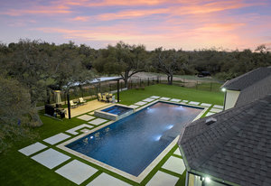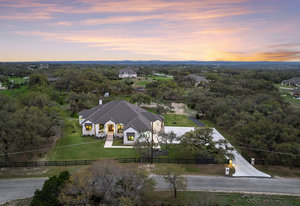 Stunning single story estate in a PRIME location minutes to Dripping Springs! Custom designed luxury home + attached Casita loaded with upgrades and offers privacy and Hill Country ambience sitting on over 1.85 acres with beautiful trees and out of this world outdoor space that is meticulously landscaped for a major WOW factor including a 20x50 foot custom designed 8ft deep pool w hot tub and outdoor cabana! South facing back yard with large extended and covered back patio with wood burning fireplace that is perfect for your morning coffee or enjoying a peaceful evening with friends and family. This property is fully fenced with an auto gate for ultimate privacy. An expansive foyer greets you with a formal dining space and french doors to a dedicated study along with a living room with 12ft cedar beamed ceilings and wall to wall windows looking straight out on the amazing outdoor space! Open concept floor-plan with Chef’s kitchen featuring an oversized island, custom cabinets, quartz countertops, stainless steel appliances, 5-burner stove with custom wood vent and an extra-large walk through pantry along with a butlers pantry! Large dining room space off the kitchen overlooks the backyard. 2nd living room tucked in toward back of the house and perfect for a kid's retreat, a game room, and media room. The primary suite offers a quiet retreat with oversized bump out for a sitting area or office space and spa like bathroom that features a freestanding tub and large walk around shower with 2 shower heads, quartz countertops, and a walk in closet. Spacious secondary bedrooms with a charming jack and Jill bathrooms and one ensuite bathroom. At the far front wing of the home you will find an attached casita that includes a full bedroom & full bath with designer tile and a separate entrance! LOW property tax rate, city water and very private lot that feels like you are far out, but ONLY 2 minutes to HEB and all the amenities of downtown Drip!