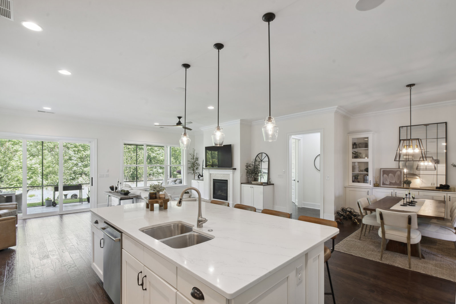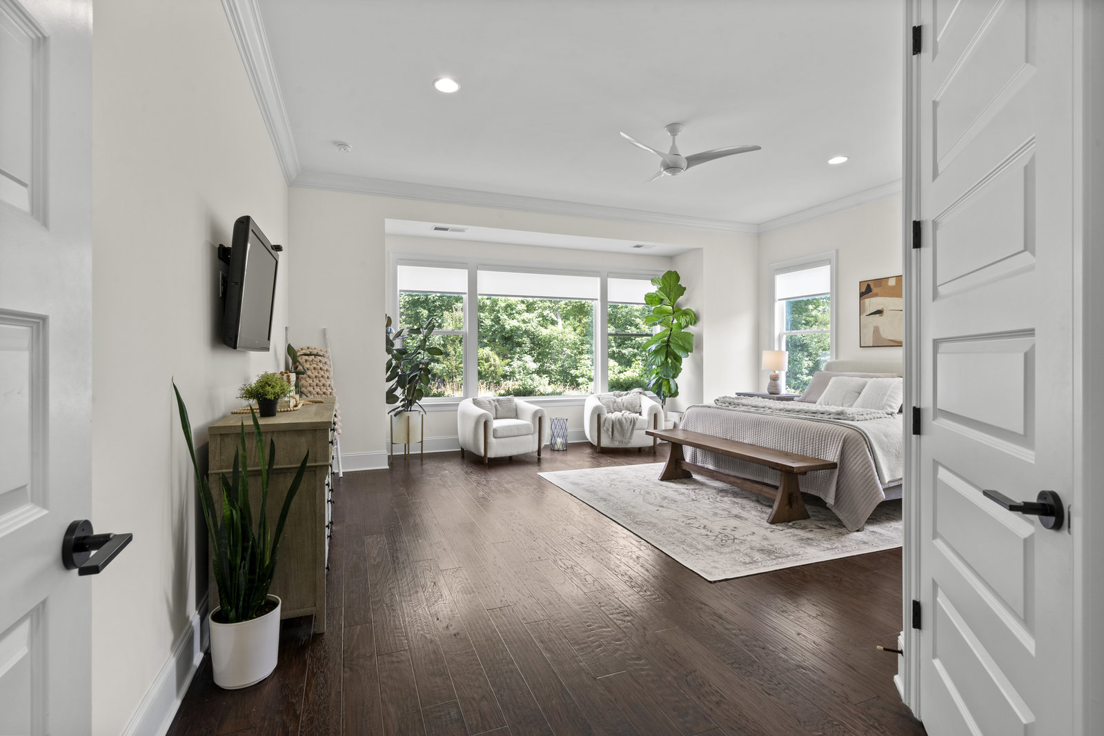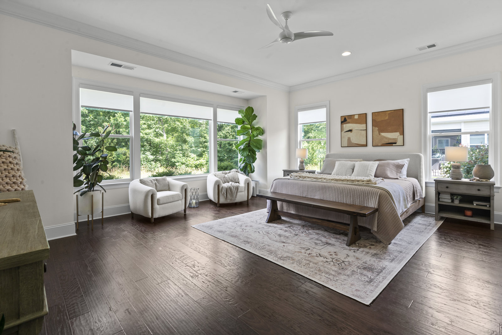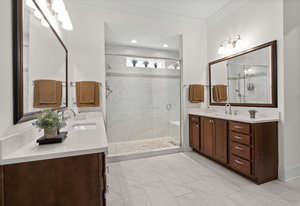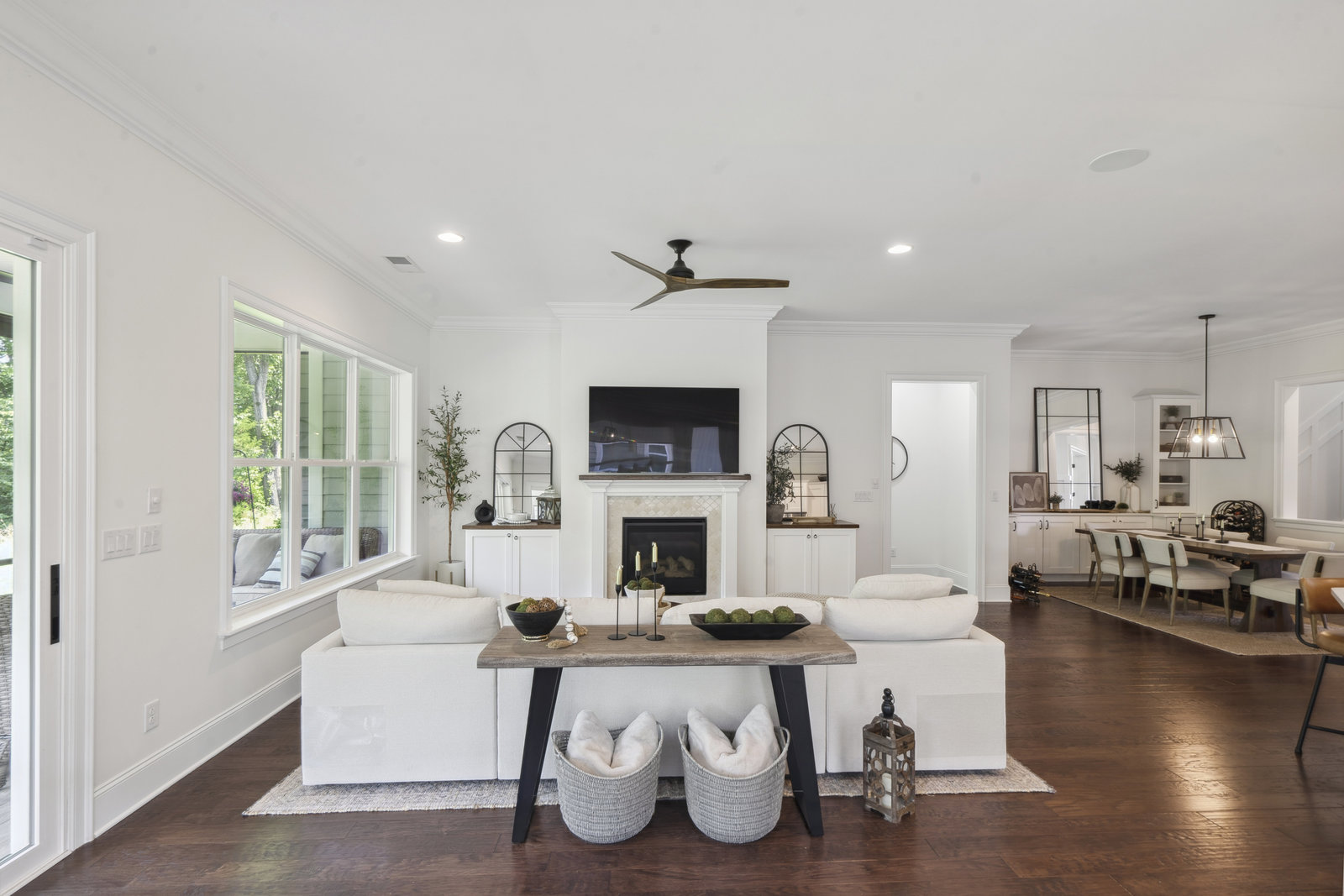 Stunning and practically new highly sought after Captivate plan with Loft and 3 car garage that features unobstructed wooded greenway views. Open concept living with multi purpose floor plan, wrap around tiled and screened porch, speaker system in great room & on rear patio. 10 ft ceilings, 8 ft. doors, extensive crown & decorative molding, gourmet kitchen is highlighted with GE Monogram appliances, 6 burner gas cook top, wall oven, warming drawer, Bosch DW, decorative tile back splash, roll out drawers in lower cabinets & island breakfast bar. Grand primary BR and en-suite bath with dual vanities, framed mirrors, tiled walk in shower & custom closet. Office/den flex space w/double doors & additional guest suite on main level w/full bath, 2nd floor has walk in storage, 9ft ceilings, loft area, full bedroom & private dual sink bath. 3 car garage with epoxy finished floor adds exceptional storage...
