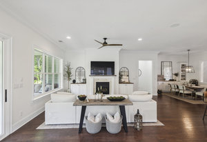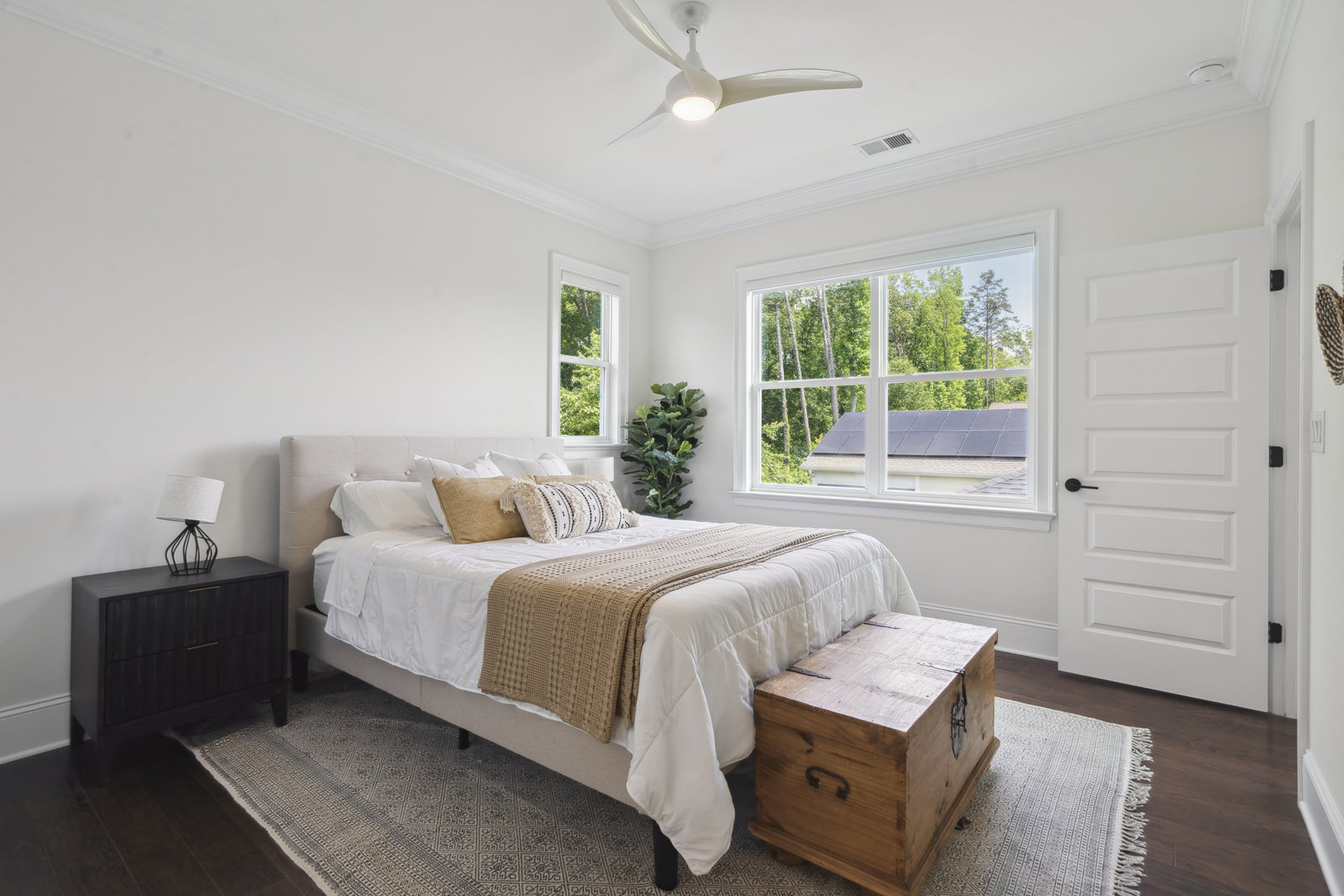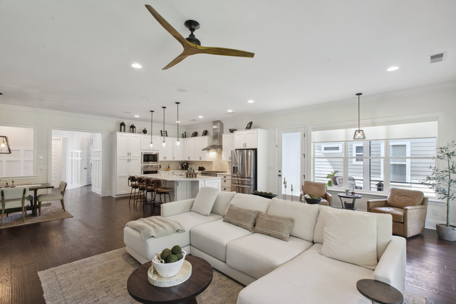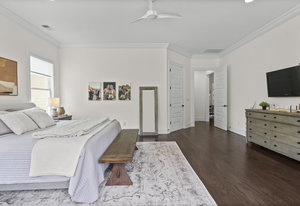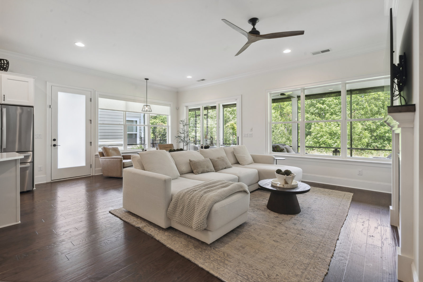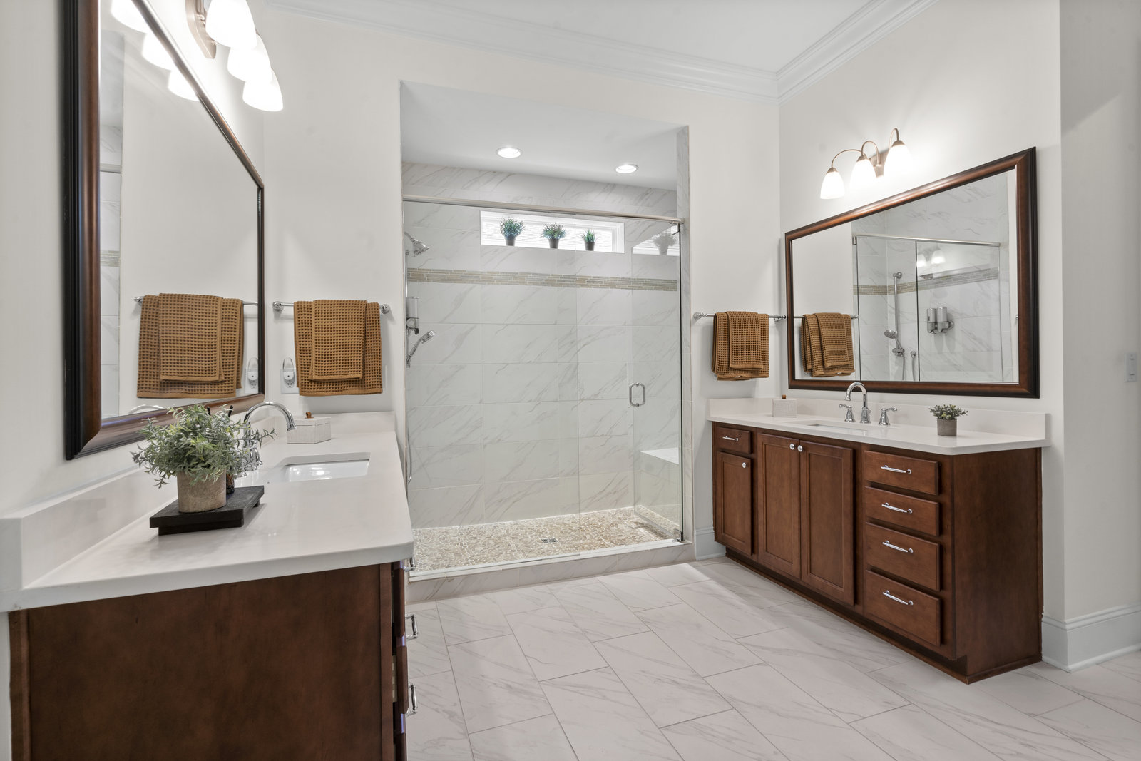 Stunning and practically new highly sought after Captivate plan with Loft and 3 car garage that features unobstructed wooded greenway views. Open concept living with multi purpose floor plan, wrap around tiled and screened porch, speaker system in great room & on rear patio. 10 ft ceilings, 8 ft. doors, extensive crown & decorative molding, gourmet kitchen is highlighted with GE Monogram appliances, 6 burner gas cook top, wall oven, warming drawer, Bosch DW, decorative tile back splash, roll out drawers in lower cabinets & island breakfast bar. Grand primary BR and en-suite bath with dual vanities, framed mirrors, tiled walk in shower & custom closet. Office/den flex space w/double doors & additional guest suite on main level w/full bath, 2nd floor has walk in storage, 9ft ceilings, loft area, full bedroom & private dual sink bath. 3 car garage with epoxy finished floor adds exceptional storage...