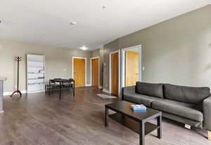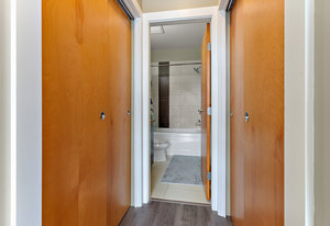 This TOP FLOOR 2 bed, 2 bath condo on the quiet side of the building is ideal for roommates, hosting guests, working from home, or families. The unique & highly functional layout offers 2 primary-style bedrooms, each with its own ensuite, maximizing privacy & flexibility. Enjoy peaceful morning sun from your east-facing balcony, while expansive oversized windows ensure a bright, open feel throughout the day. Featuring durable laminate flooring, stainless steel appliances, & a sleek, modern kitchen, this move-in-ready home also leaves room for your personal touch. In-suite laundry, secure underground parking, a dedicated storage locker, bike storage, + an electric fireplace complete the ...