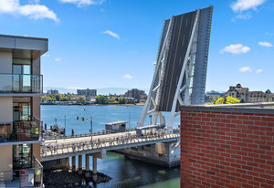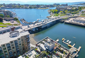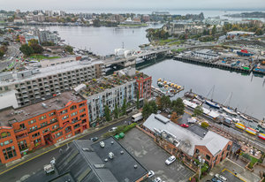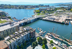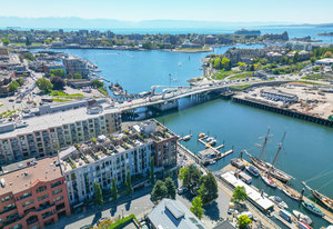 Stairway to Heaven! This stunning Pied-a-terre overlooks the inner harbour and David Foster Walkway, with distant views to the Odgen Point Cruise ships and Olympic Mountains. This meticulous suite offers a living room with gas fireplace, updated kitchen with eating area, in suite laundry, a 4 piece bathroom and a bedroom with a CUSTOM STAIRWAY to your downtown sanctuary. The PRIVATE ROOFTOP PATIO is over 400 sq ft and is ideal for gardening, outdoor dining (for 2 or 20) or the best seats in town for watching the Canada Day Fireworks! The lively waterfront location offers kayaking and boating at your doorstep, walking distance to everything, and at the crossroads to the extensive cycling network. ...