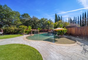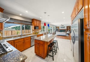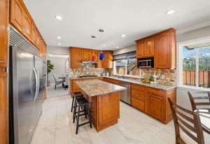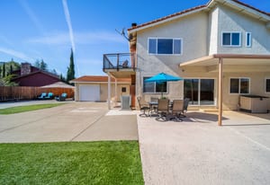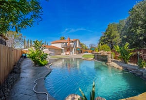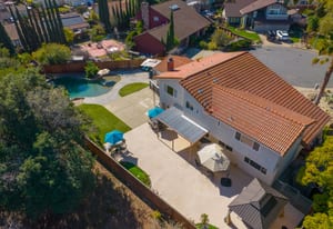 Top of the Mountain! Bright and beautiful home with views in the desirable Dana Hills neighborhood! The downstairs includes an ensuite bedroom, dining room, living room, family room, and guest bathroom. The kitchen features an island, double oven, breakfast bar, dining area, and plenty of cabinetry, making it ideal for both everyday convenience and entertaining. Upstairs, you'll find four bedrooms and two bathrooms. The primary ensuite bedroom upstairs features a walk-in closet and updated bathroom with a double vanity. Step out and enjoy the views from the deck attached to one of the upstairs bedrooms! The backyard has ample space and is easily the place you and your friends will gravitate to! Designed for easy maintenance and maximum fun. The grotto is the real highlight of the backyard in this stunning pool! Fun for all in the large pool area. A drive through garage, space for storage or a possible boat or RV. So much to love about this home and yard. In the neighborhood you have access to trails, a playground, and clubhouse. Nestled in a charming court at the top of the hill, come home to excellence!
