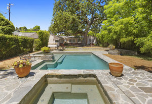 Offering this single-story English-style Tudor estate located within the prestigious community of Amestoy Estates, Encino. Situated on more than a half-acre lot, this masterpiece is guarded by two gates fronting a regal, grand circular driveway. This home features hardwood floors, high ceilings, tremendous amount of storage/closet space throughout, and is filled with an abundance of natural light. The grand entry opens up to an elegant Living Room boating a cozy fireplace. Family Room boasts a charming fireplace, full wet bar, and opens up to a picturesque, private Backyard surrounded by lush landscaping. Gourmet Chef’s Kitchen is equipped with Sub Zero refrigerator, double ovens, and cooktop with indoor barbeque/griddle. Flanking the Kitchen and Laundry Room is a large bedroom with an en-suite Bathroom perfect for guests, maid’s quarter, nanny, office etc. An extravagant Master Bedroom features an elegant Fireplace, two spacious walk-in closets, and large en-suite Bathroom sporting a relaxing jacuzzi tub. Down the hallway are three more spacious bedrooms, each with an en-suite Bathroom. Backyard contains a luxurious Pool/Spa, Basketball Court, and a one of the largest, most beautiful and historic Oak Trees in the area. The Backyard also boasts a spacious Guest House equipped with its own Bathroom and full Kitchen. This sanctuary is located just minutes away from Ventura Blvd, the 101 Fwy, and all the finest shops, restaurants, parks and nightlife that Encino has to offer. Zoned for Encino Charter School District.
