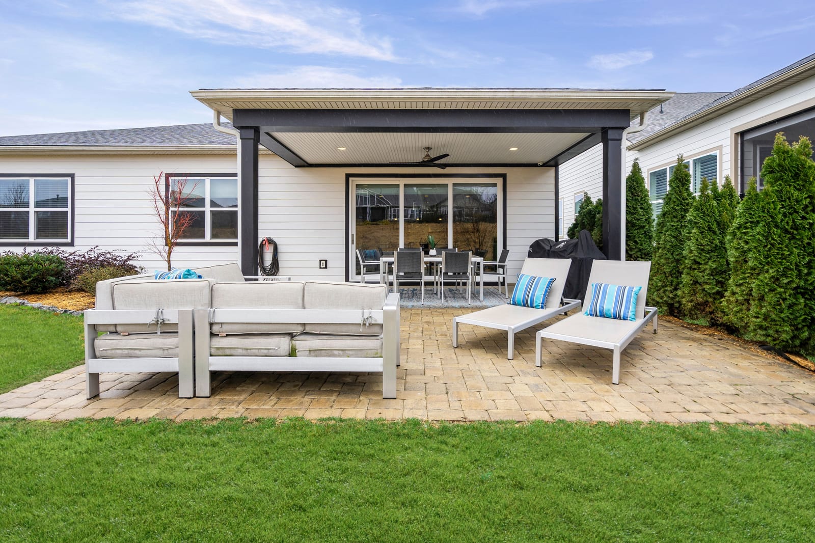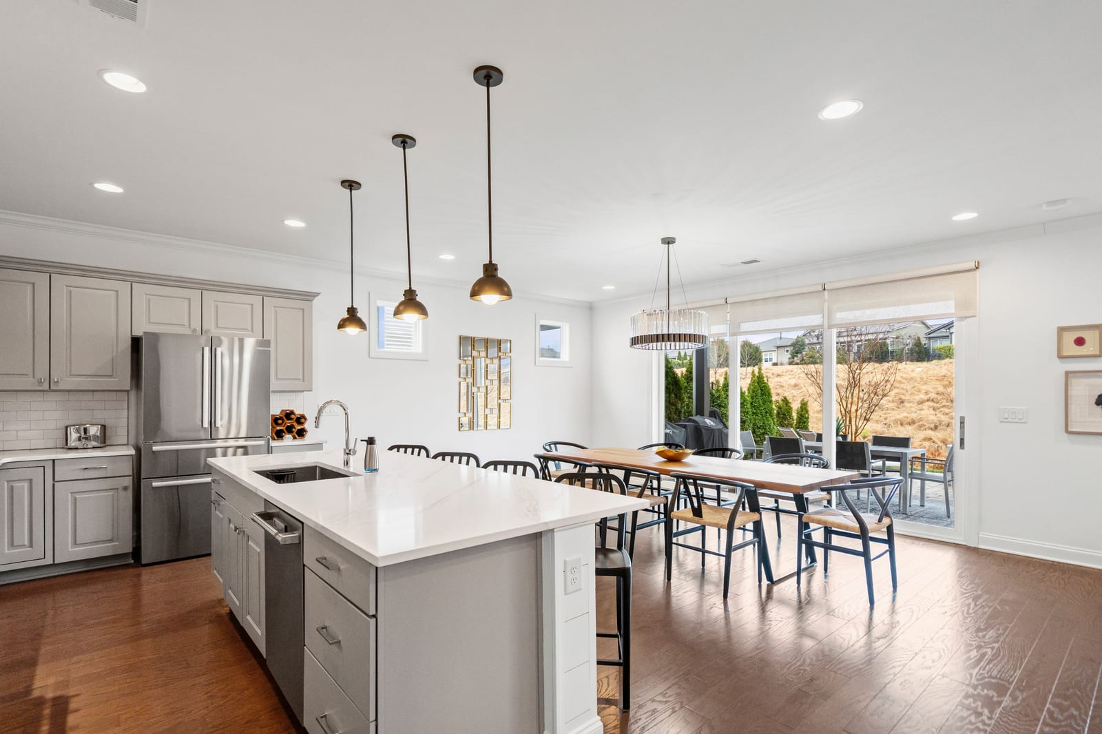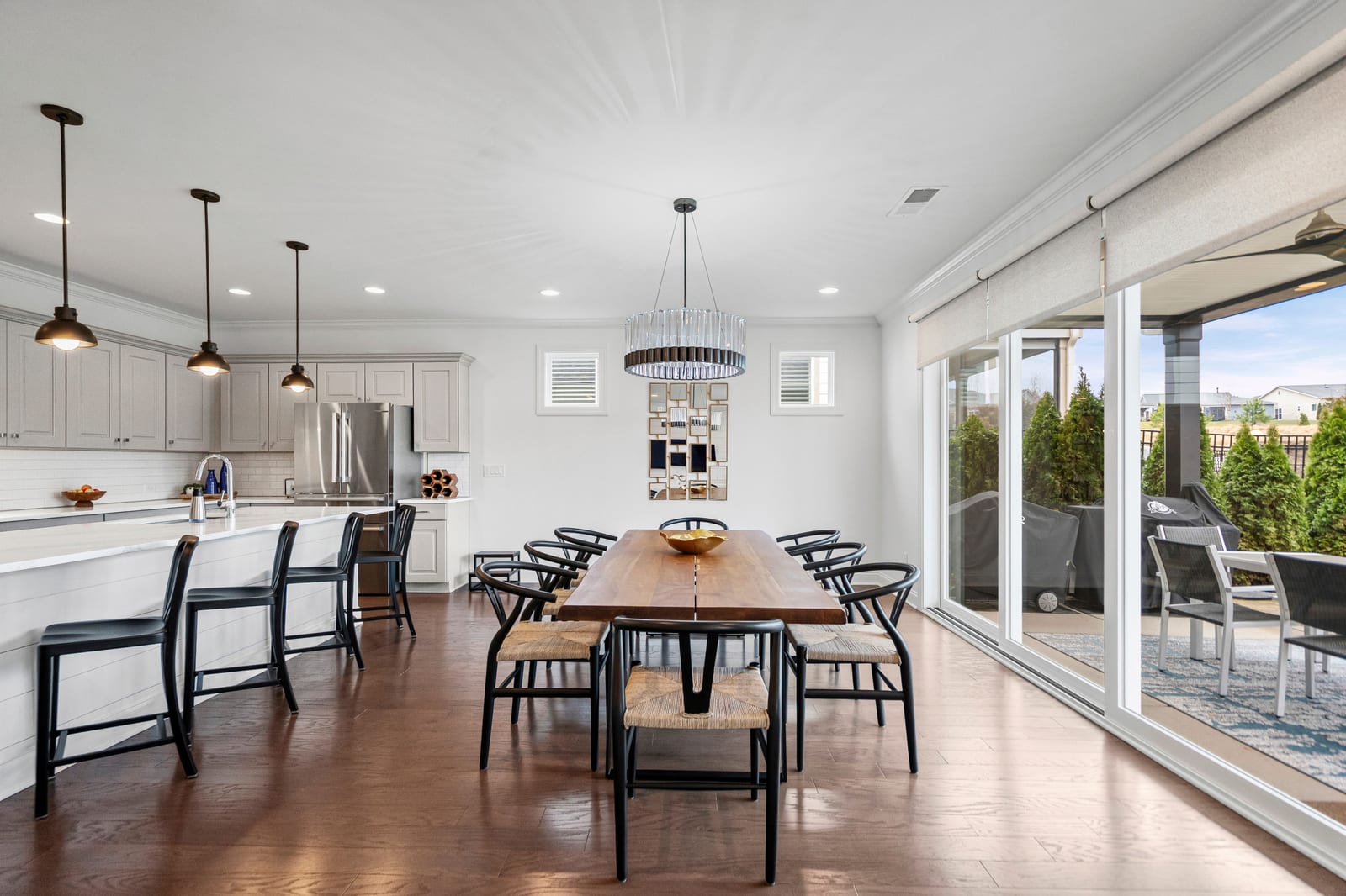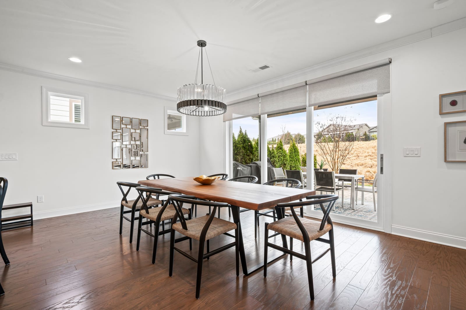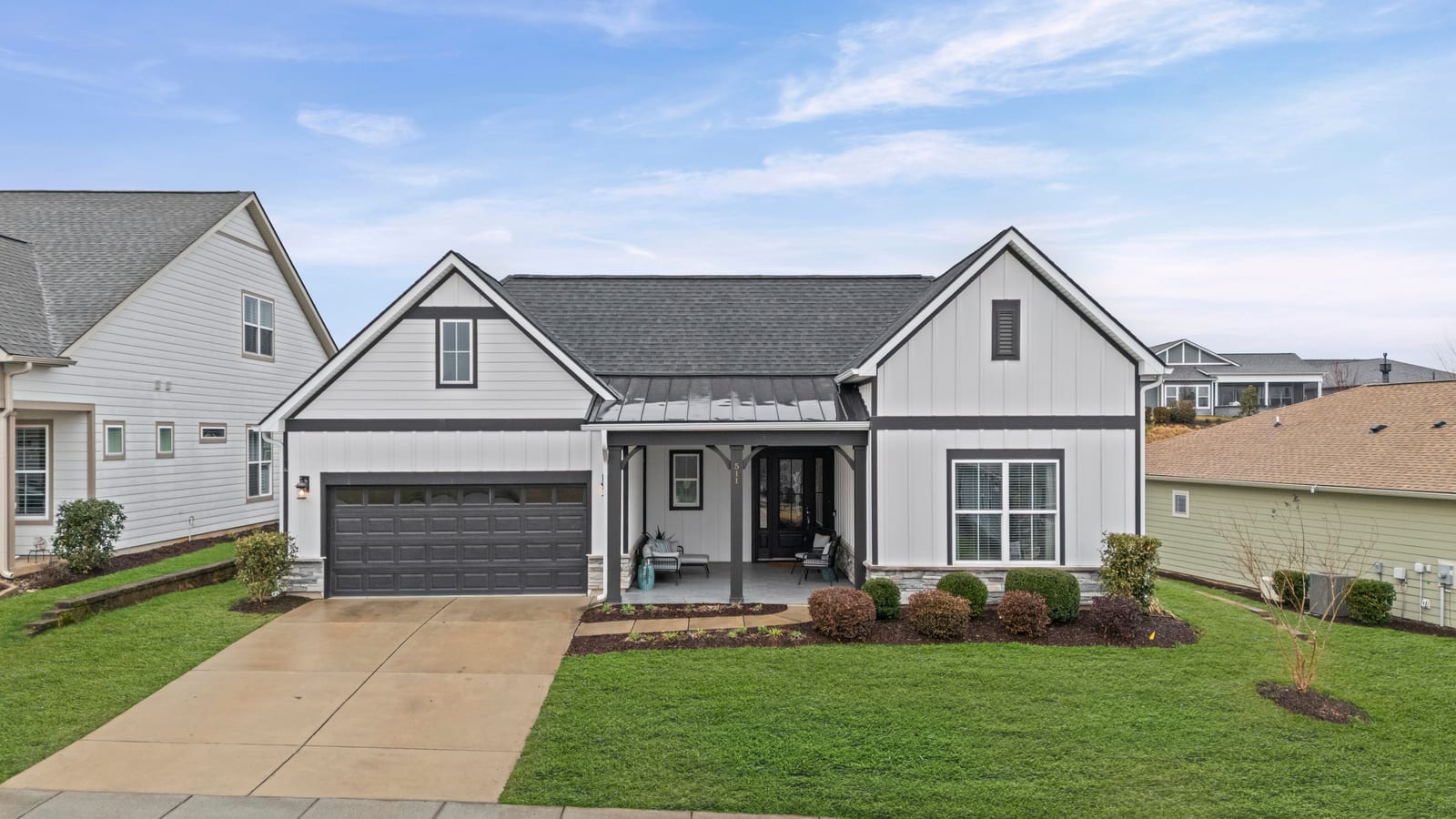 Enjoy wonderful sunset greenway views in this truly custom Liberty plan that has been thoughtfully designed with a meticulous attention to detail, barely lived in, and offers many different living configurations. Entry foyer with ship-lap accent walls leads you into this open-concept residence that has an amazing use of function & space plus decorator colors, lighting & finishes. A well appointed kitchen anchors the main living area & includes SS GE Cafe appliances, solid surface countertops, tile backsplash, Bosch refrigerator & cabinets w/soft close drawers. Dining area w/wall of glass opens and flows seamlessly to the covered Lanai & extended paver patio with privacy landscaping expanding in and outdoor entertaining areas. Great room offers electric shades for added privacy. Office/flex space features glass doors creating a serene setting. A substantial primary suite completes this home w/dual sink vanity, tile floors and shower plus a generous custom walk-in closet. Low maintenance wood & tile floors throughout. Additional bedroom with ensuite bath and walk in closet. Third bedroom with adjacent bath and central laundry room includes washing machine and dryer. Water filtration system. Oversized 2 car garage with golf cart storage. Trilogy Membership includes Freedom Boat Club on Lake Norman plus award winning amenities
