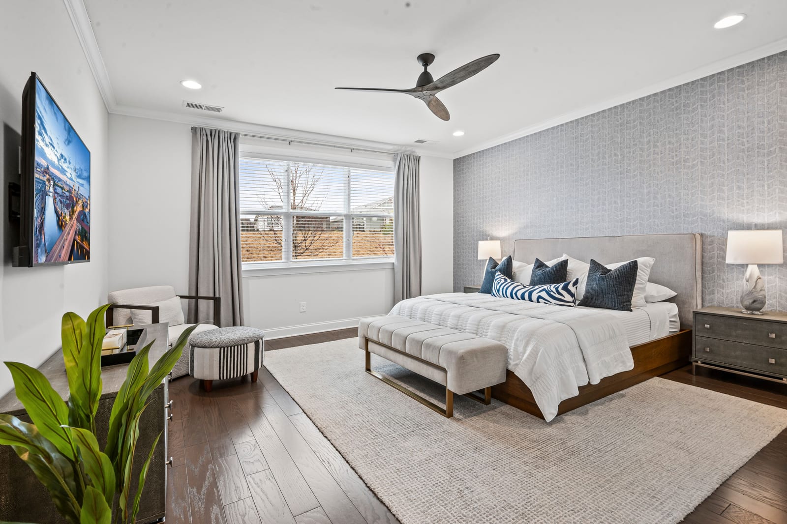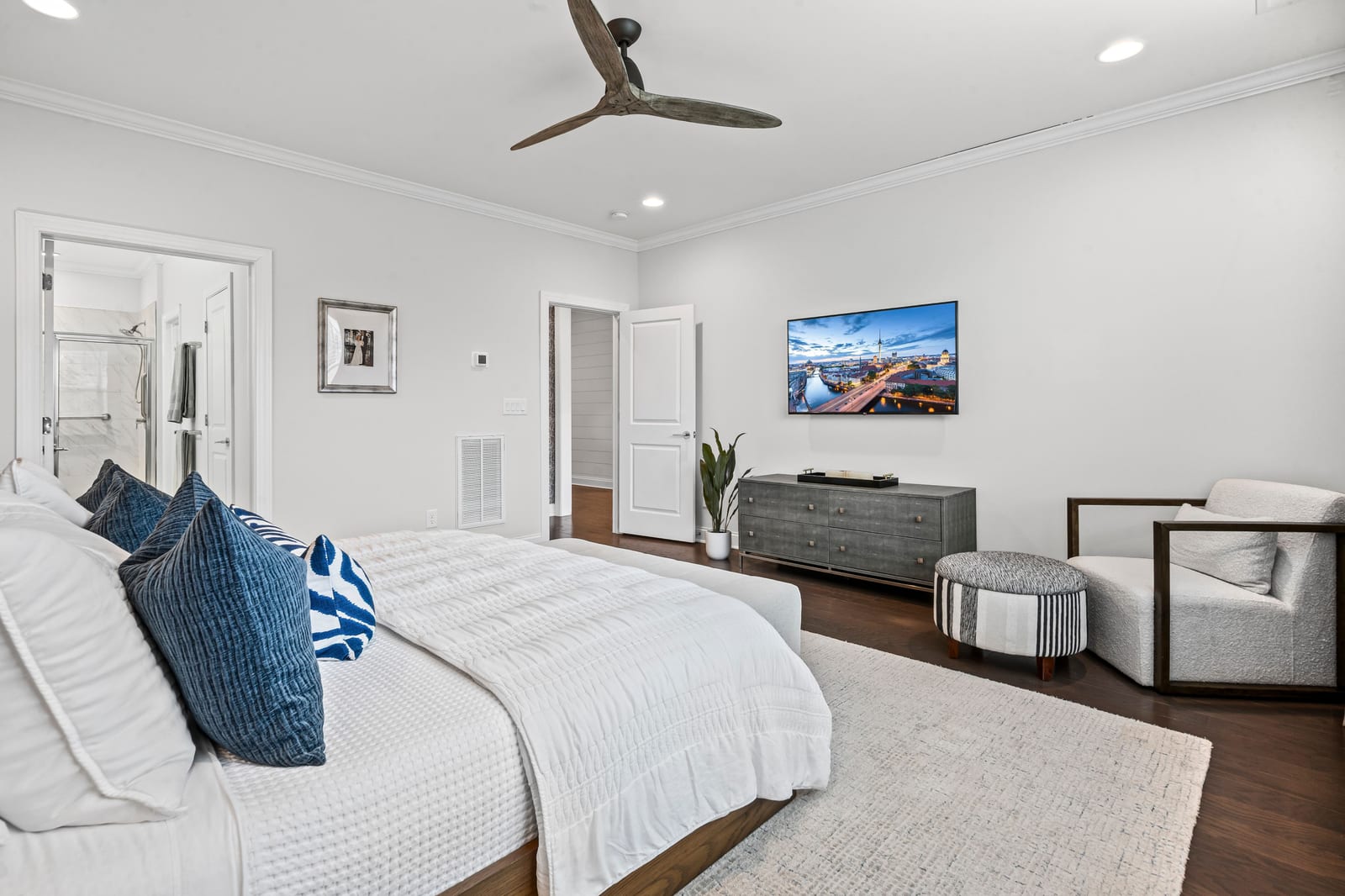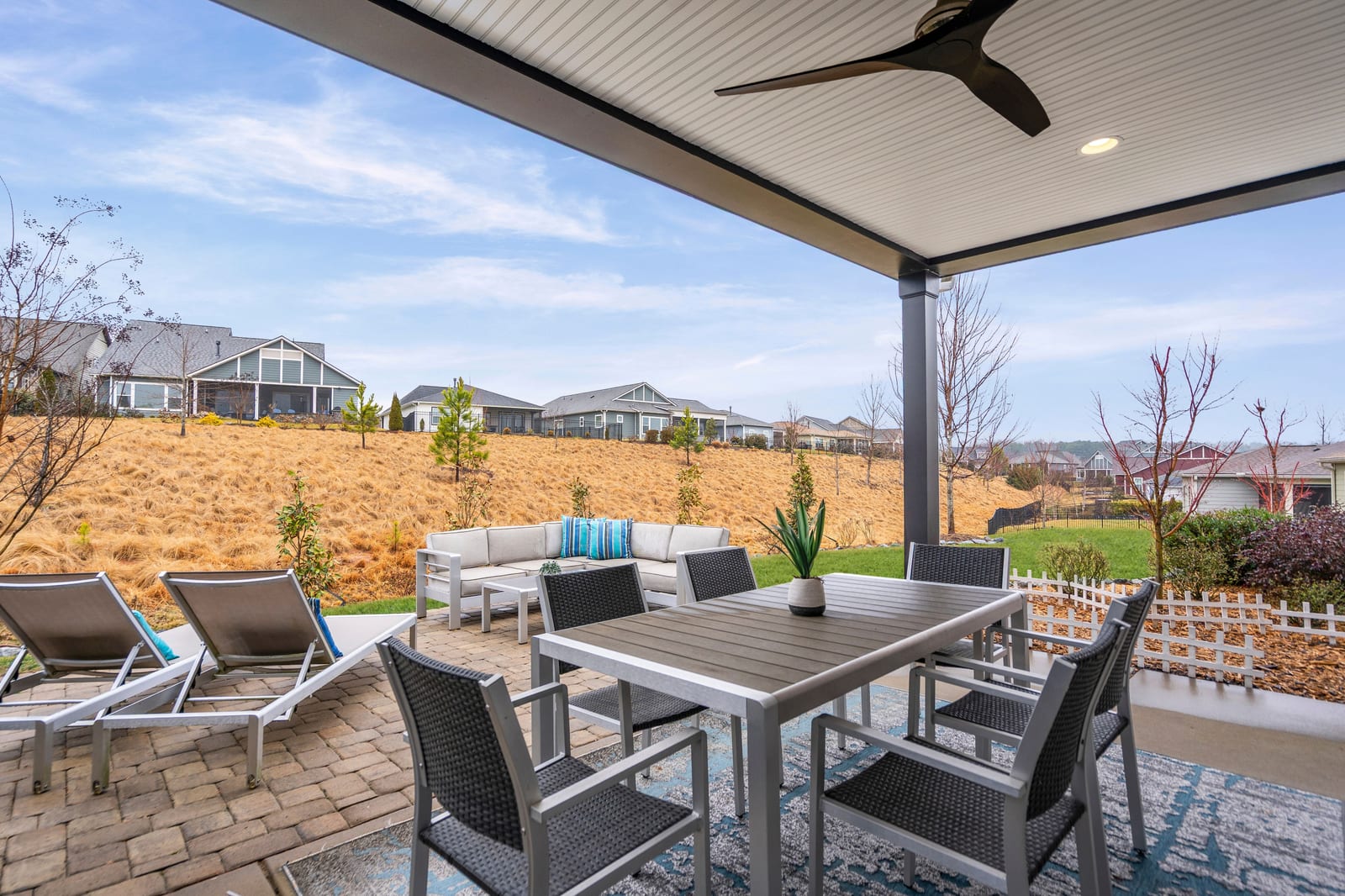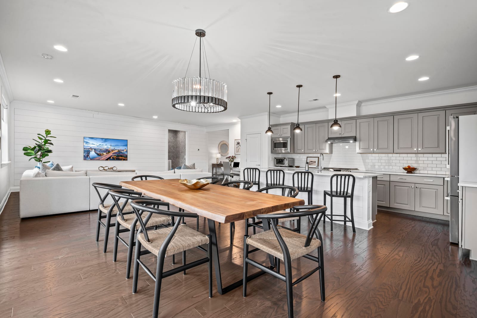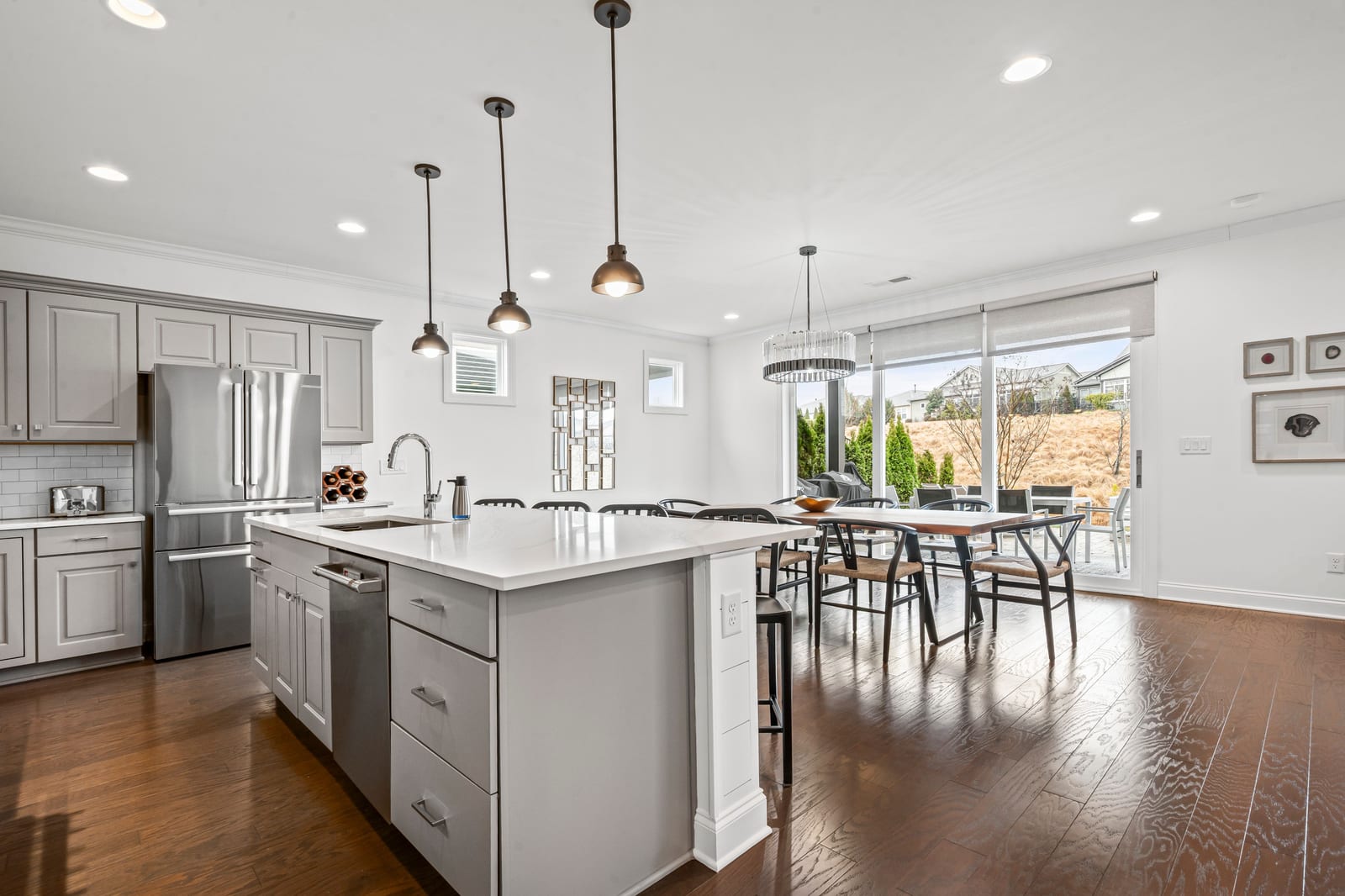 Enjoy wonderful sunset greenway views in this truly custom Liberty plan that has been thoughtfully designed with a meticulous attention to detail, barely lived in, and offers many different living configurations. Entry foyer with ship-lap accent walls leads you into this open-concept residence that has an amazing use of function & space plus decorator colors, lighting & finishes. A well appointed kitchen anchors the main living area & includes SS GE Cafe appliances, solid surface countertops, tile backsplash, Bosch refrigerator & cabinets w/soft close drawers. Dining area w/wall of glass opens and flows seamlessly to the covered Lanai & extended paver patio with privacy landscaping expanding in and outdoor entertaining areas. Great room offers electric shades for added privacy. Office/flex space features glass doors creating a serene setting. A substantial primary suite completes this home w/dual sink vanity, tile floors and shower plus a generous custom walk-in closet. Low maintenance wood & tile floors throughout. Additional bedroom with ensuite bath and walk in closet. Third bedroom with adjacent bath and central laundry room includes washing machine and dryer. Water filtration system. Oversized 2 car garage with golf cart storage. Trilogy Membership includes Freedom Boat Club on Lake Norman plus award winning amenities