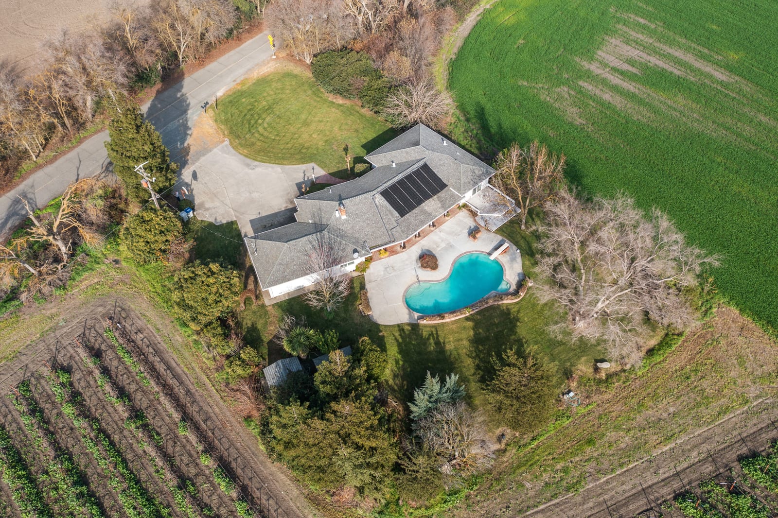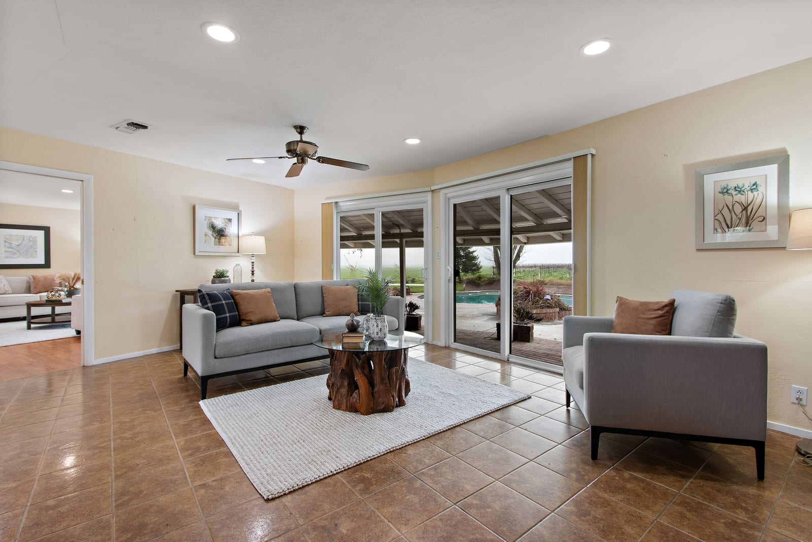 Nestled in the heart of the charming Clarksburg community, 51451 Central Ave offers the perfect blend of small-town tranquility and modern convenience. Surrounded by top-rated schools, nearby wineries, and the serene Sacramento River, this sought-after single-level home is a private retreat you won’t want to miss. Set on a generous 0.54-acre lot, this home is perfectly positioned to take in breathtaking sunsets over wide-open skies and rolling vineyards. Inside, the light-filled living room invites you to relax, with stunning backyard views, direct outdoor access, and gleaming hardwood floors. The open-concept kitchen and family room are the heart of this home, featuring a cozy brick fireplace, a charming breakfast nook with built-in shelving, and a kitchen outfitted with rich wood cabinetry, granite countertops, and ample storage space. The home offers four generously sized bedrooms, along with two well-appointed bathrooms and the convenience of an interior laundry room. Step outside to your private backyard oasis, designed for entertaining and unwinding alike. A sparkling pool, lush lawn, and multiple patio spaces create the ideal setting for summer barbecues, evening gatherings, or simply soaking in the peaceful surroundings. Enjoy the best of country living with all the perks of being just a short drive from Sacramento. Whether you’re sipping wine at a local vineyard or taking a leisurely stroll through this picturesque community, 51451 Central Ave is more than a home—it’s a lifestyle.