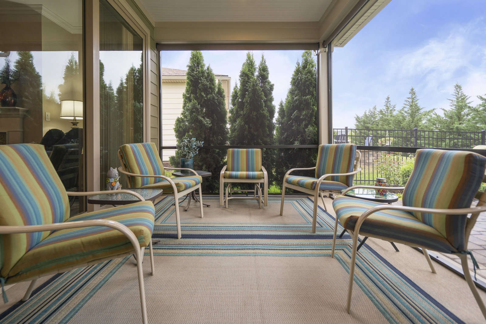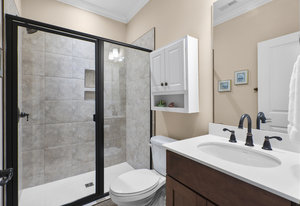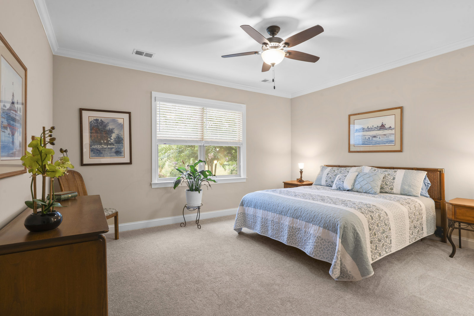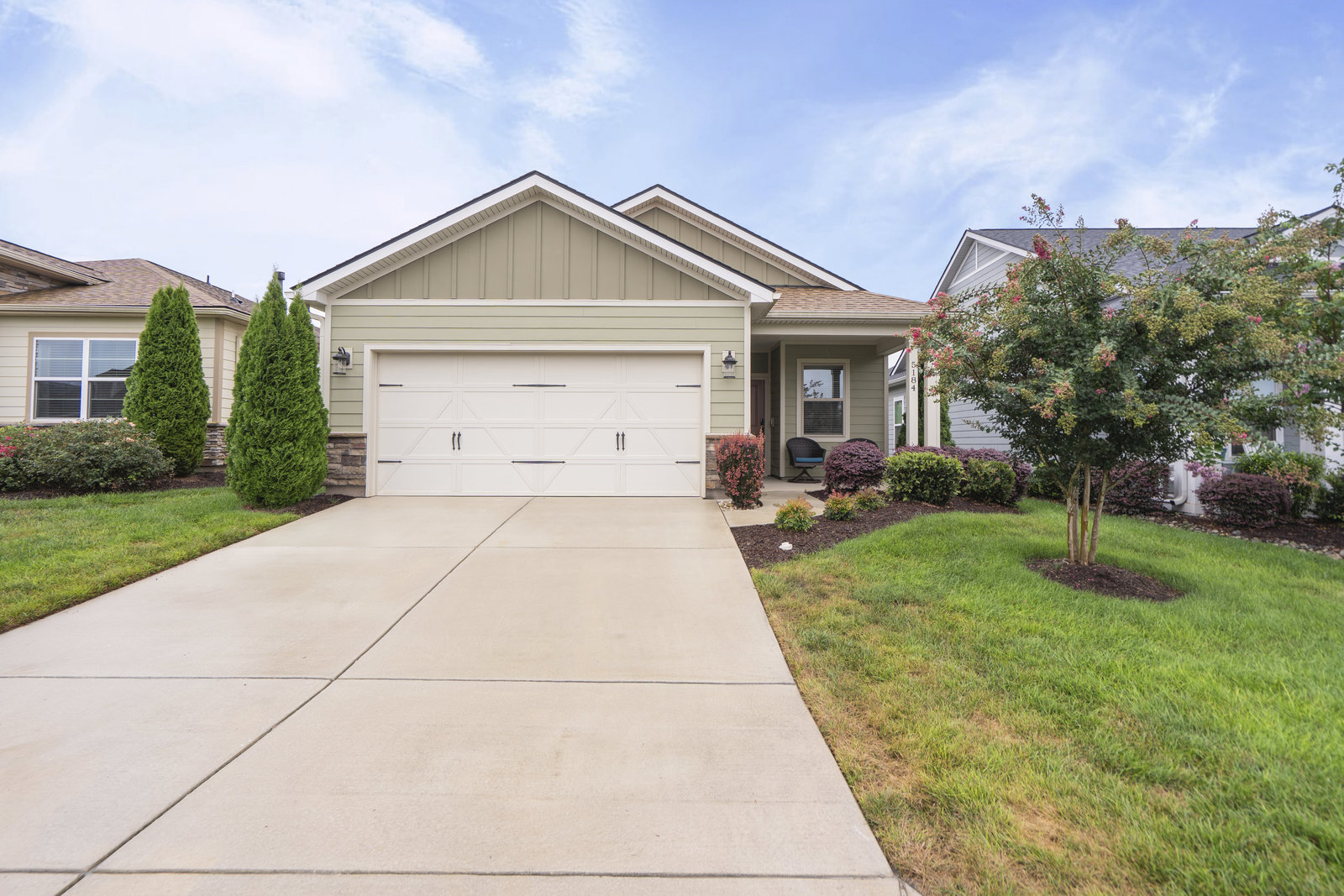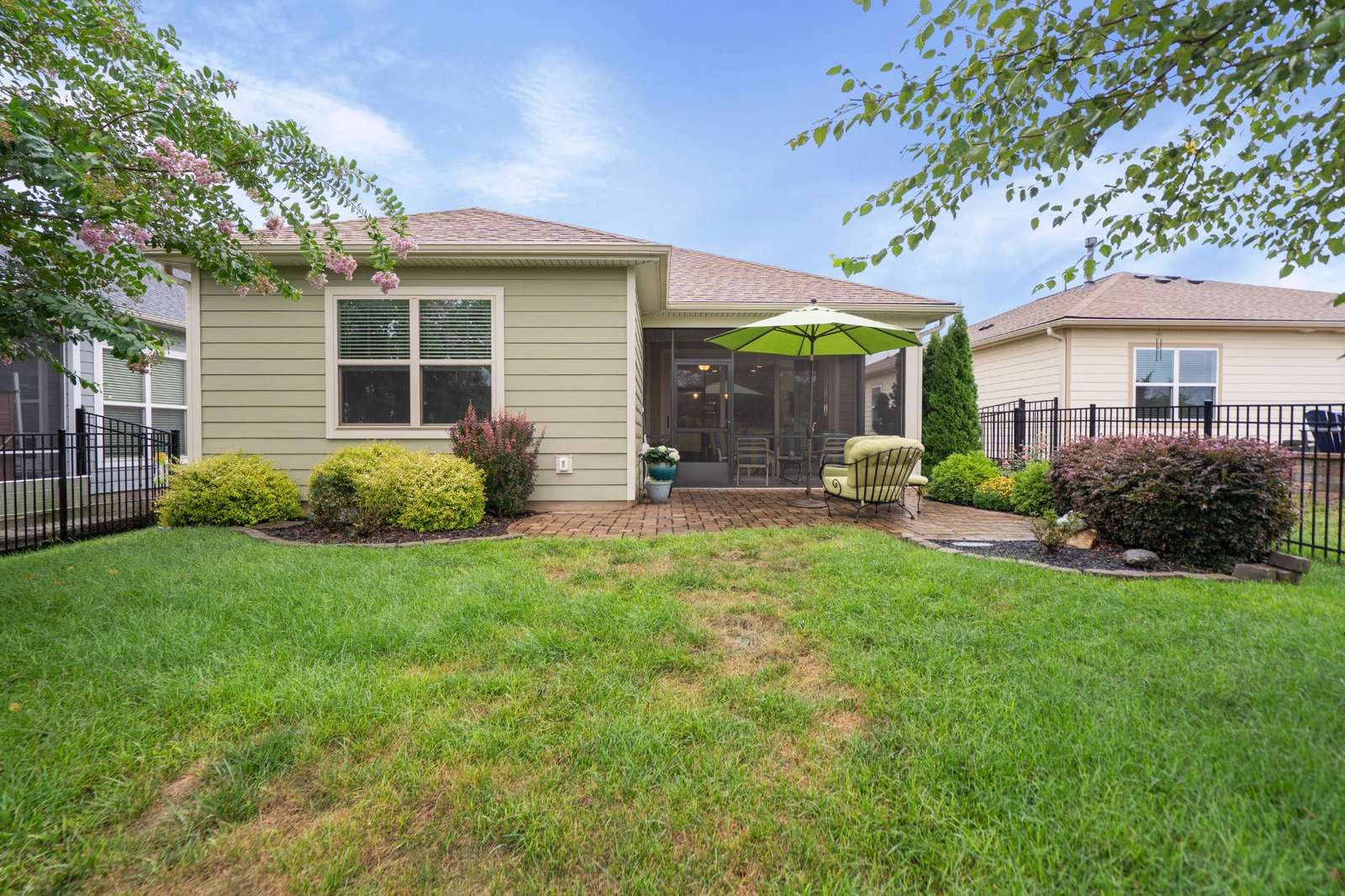 This split 2BR, 2B home with a 2 Car garage features decorator colors, lighting & finishes. Make yourself comfortable and enjoy the open-concept, beautifully landscaped Glory floorplan that has an amazing use of function and space. A well-appointed kitchen anchors the main living area and includes stainless steel appliances, gas range, granite countertops, pendant lighting, light craftsman style cabinetry and island breakfast bar. The great room has a gas fireplace that flows thru the wall of glass to a private screened lanai & onto an extended paver patio with unobstructed common area views. A serene master suite completes this home & ensuite bath with dual sink vanity, tile floor and a generous walk-in closet & tiled shower. Low maintenance wood and tile flooring main living areas and carpeted bedrooms plus crown molding throughout the home. Large laundry room with additional cabinetry/storage. Trilogy Membership includes Freedom Boat Club on Lake Norman plus award winning amenities...