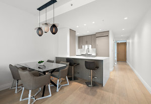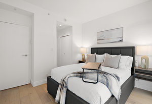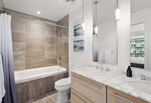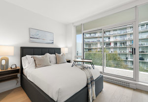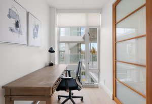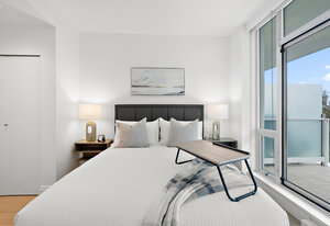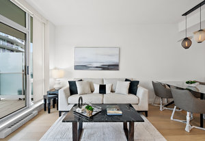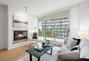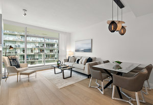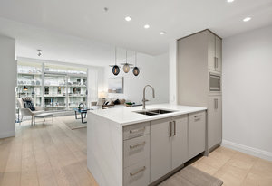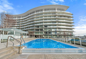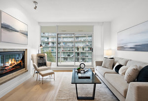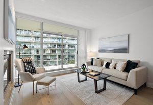 Experience the tranquility of harbour city living at the prestigious steel and concrete Shutters building. This exceptional building seamlessly blends contemporary architectural design with resort-like amenities ranging from the massive outdoor swimming pool complete with loungers, hot tub, gym, sauna, outdoor water features and concierge service. Perched up on the 5th floor, this 1 bedroom + den, 2 bathroom unit offers city and skyline views with an abundance of natural light from the floor to ceiling windows. Featuring elegant fixtures, freshly painted walls, electric fireplace, 187 sq. ft. balcony and updated wide plank engineered hardwood throughout. The kitchen offers an eat-in island, gas ...