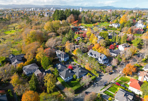 This accessible and fastidiously maintained townhome sits on the grounds of a Francis Rattenbury Manor home. Located in the exclusive neighbourhood of Rockland, the principles of connection with location and design sing. This residence is one of three unique homes nestled in an enclave backing onto Government House. Its design features oversize windows pulling in natural light, expansive ceiling heights and spacious rooms. The approach flows through a beautiful breezeway graced by a Japanese maple courtyard. There is a natural, flowing connection between indoor and outdoor spaces. The 3000sqft of living space includes 5 bedrooms, 3 full bathrooms, ...