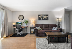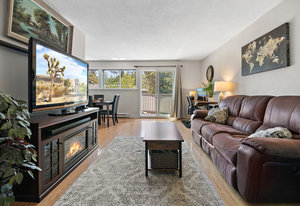 Welcome to your new abode! This meticulously maintained 2 bed, 1 bath south west facing unit offers nearly 900 sqft of living space, catering perfectly to couples, growing families, or investors. Step inside and be greeted by bright natural light in the living/dining area with recently upgraded shades, leading to a spacious patio. The kitchen boasts stainless steel appliances, under cabinet lighting, ample cabinetry and storage. The home features a 4-piece bathroom with heated floors, two bedrooms, in-suite laundry, and is pet-friendly (no size restrictions). This family-friendly neighbourhood complex offers amenities like a pool, basketball court, and clubhouse. Centrally located, close to ...