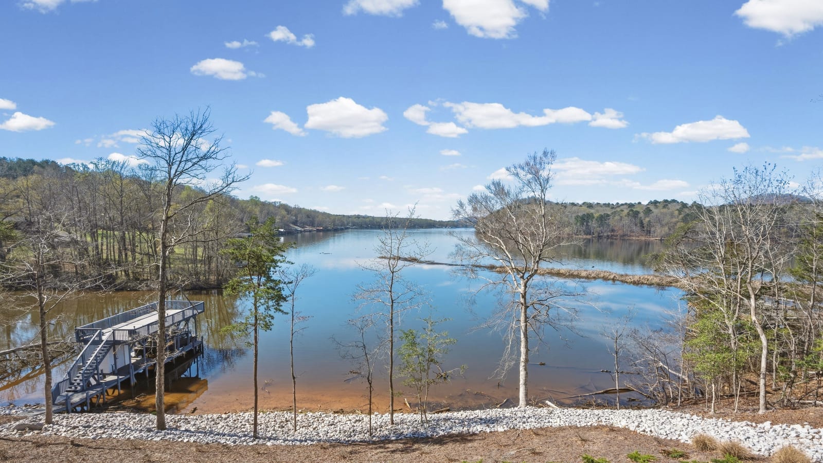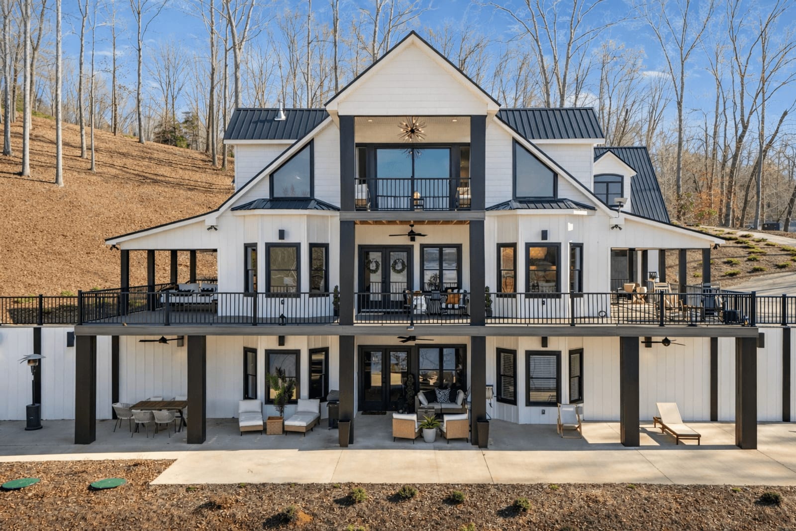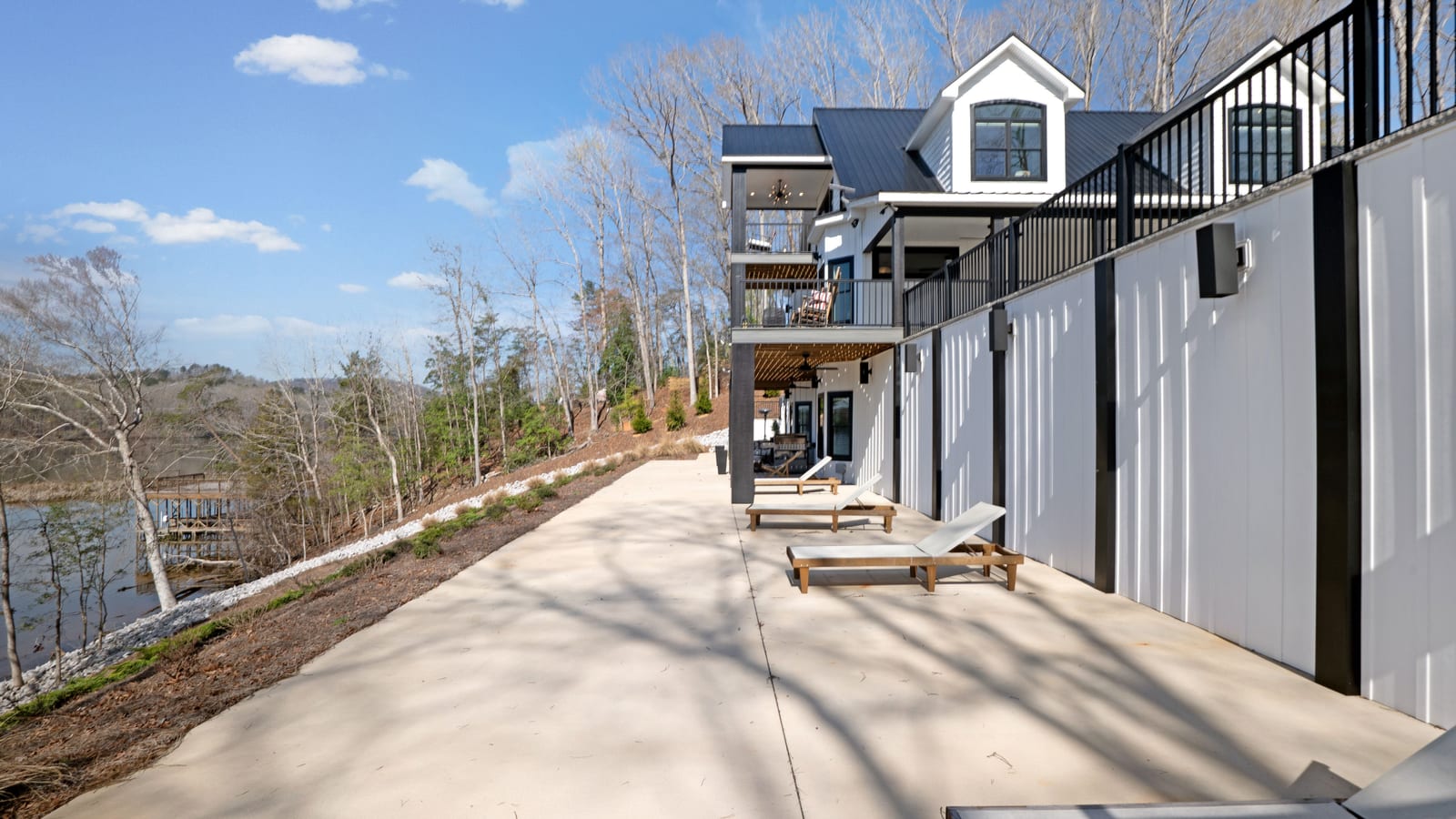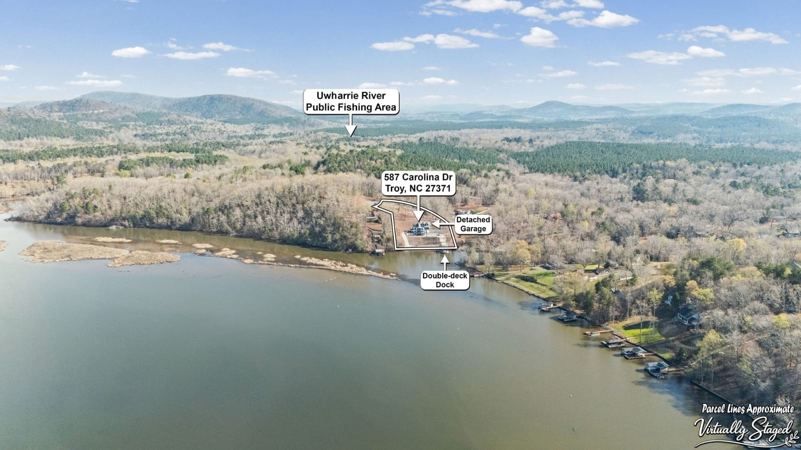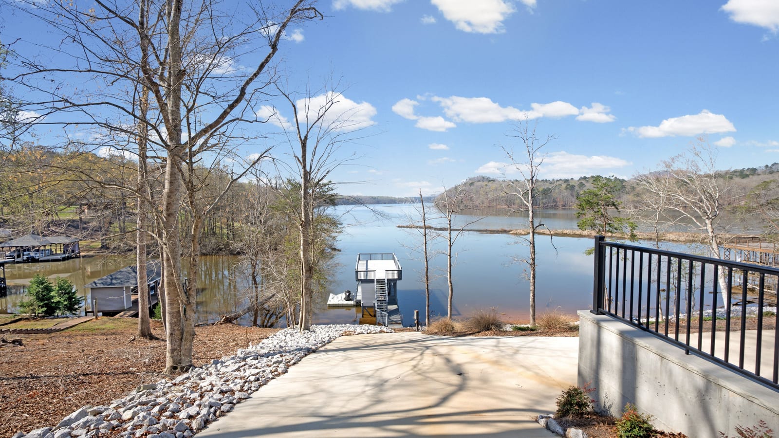 Set along the shoreline of Lake Tillery, this 3-bedroom, 3-bath custom-built residence (2024) offers 3,362 square feet of refined living on 1.43 private acres, where architecture and setting come together to create a truly striking waterfront retreat. Clean lines, curated finishes, and expansive glass frame uninterrupted lake views, bringing natural light into every level of the home. Designed for both everyday living and entertaining, the open layout flows effortlessly onto spacious covered porches and outdoor living areas that overlook the water. The kitchen blends form and function with sleek quartz surfaces, custom cabinetry, and premium appliances, while thoughtfully selected details carry throughout the home for a cohesive, high-end aesthetic. The primary suite is designed as a private escape, featuring a spacious layout and a spa-style bath with elevated finishes and a modern, tranquil feel. The lower level expands the living space with a fully finished area ideal for entertaining, complete with a custom bar and direct access to the outdoors. A private dock extends your living experience onto the water, making it easy to enjoy everything Lake Tillery has to offer. The surrounding landscape provides a peaceful, natural backdrop with long-range views that change beautifully with the seasons. A distinctive, newly constructed waterfront home offering a rare combination of design, setting, and lifestyle.