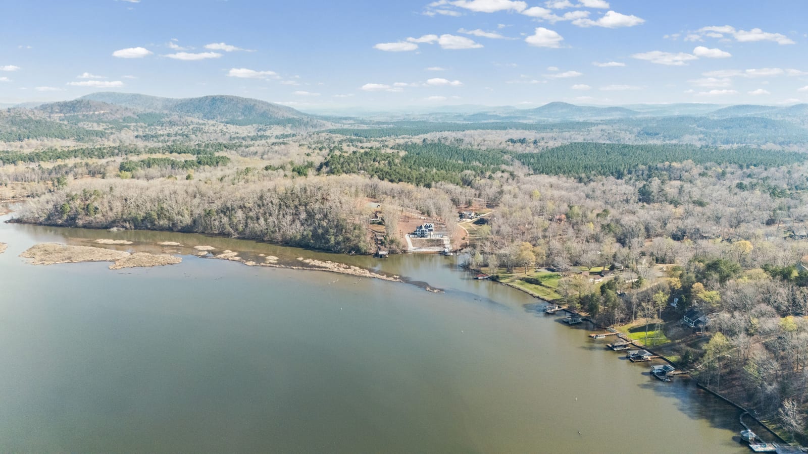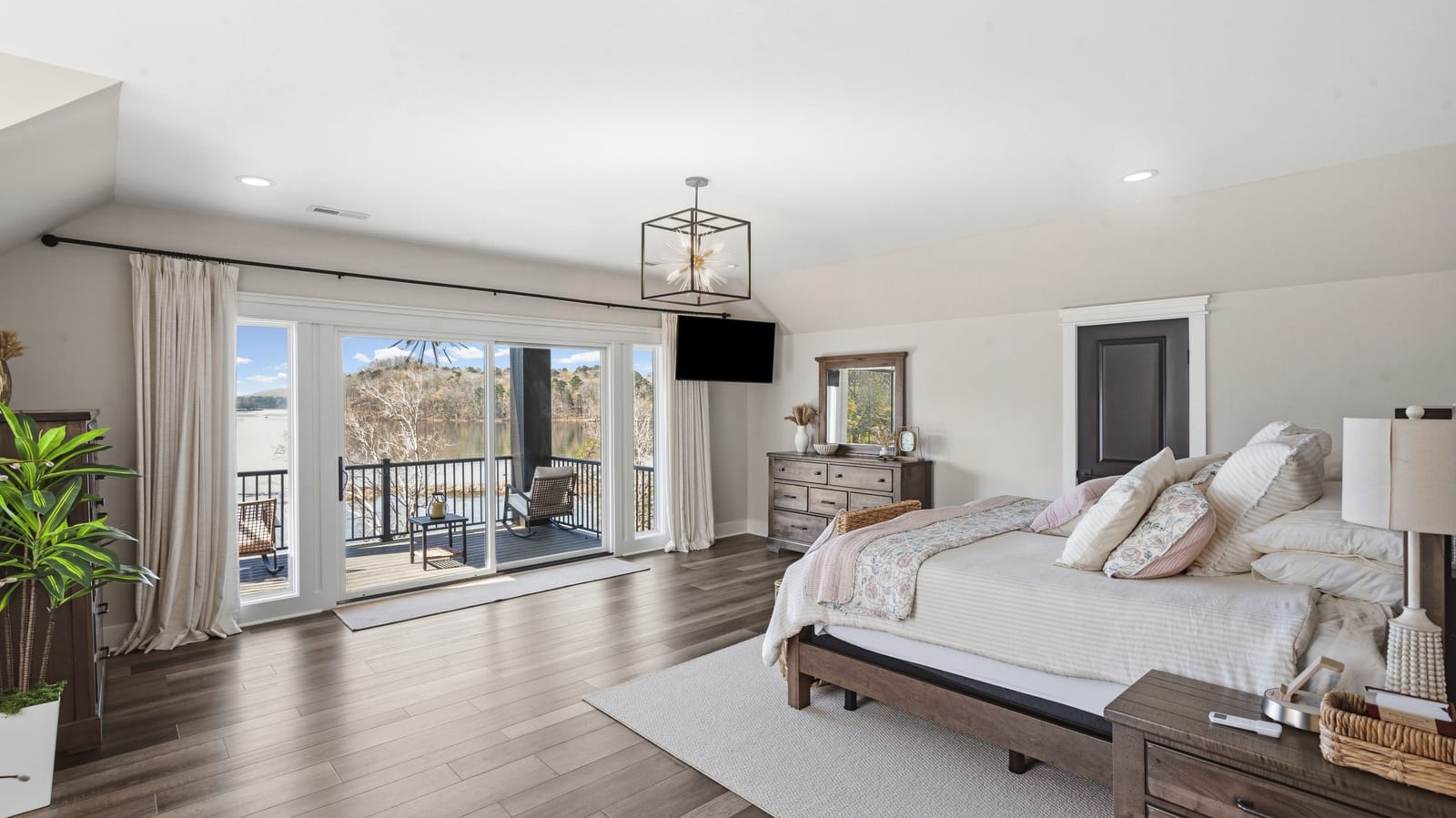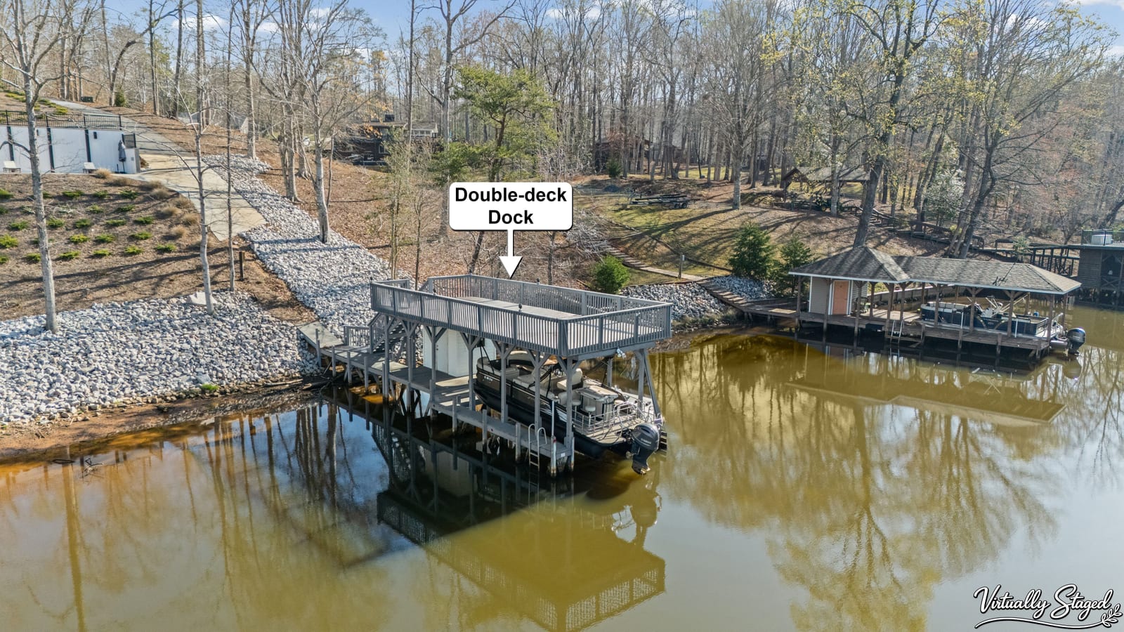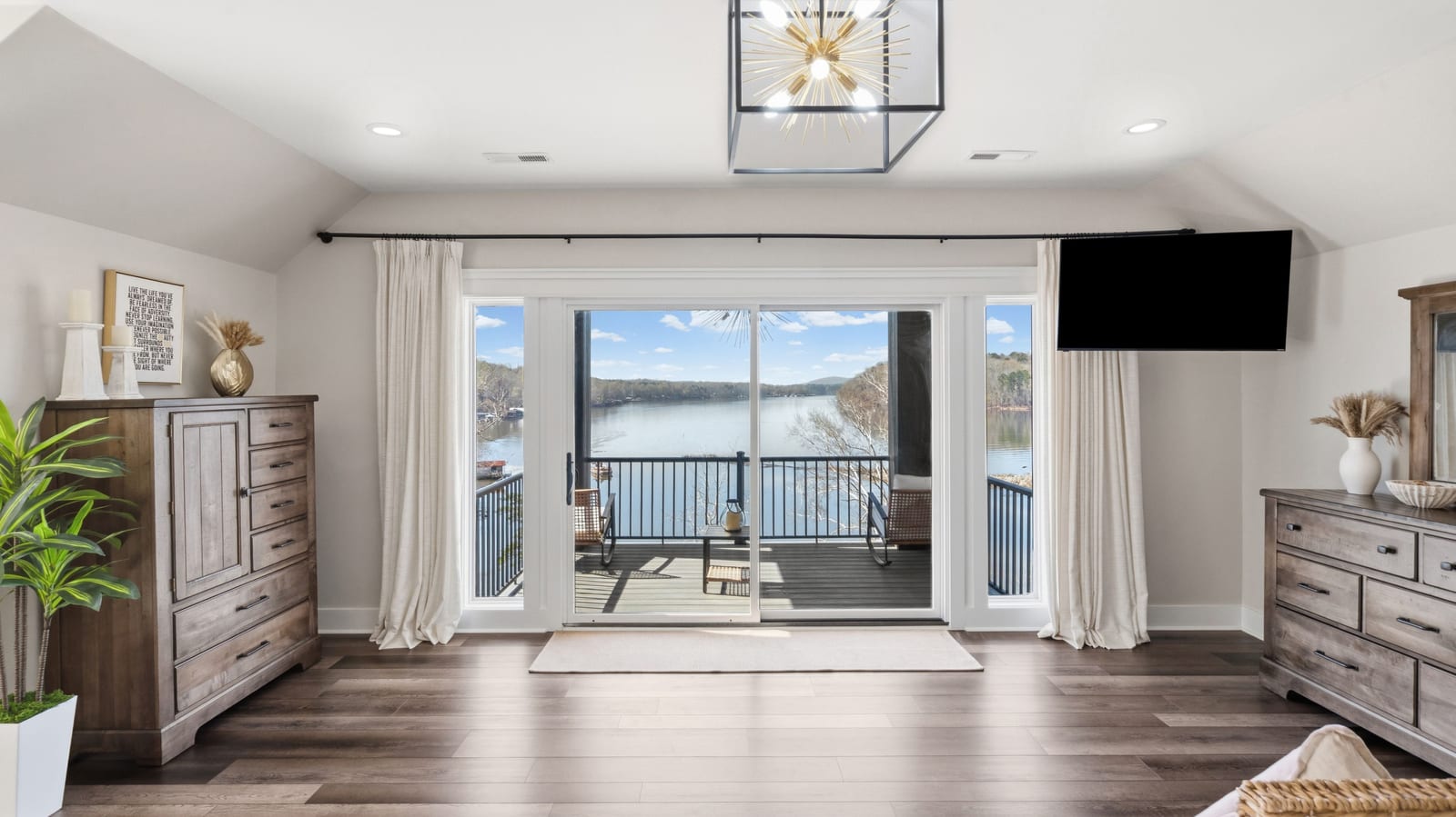 Set along the shoreline of Lake Tillery, this 3-bedroom, 3-bath custom-built residence (2024) offers 3,362 square feet of refined living on 1.43 private acres, where architecture and setting come together to create a truly striking waterfront retreat. Clean lines, curated finishes, and expansive glass frame uninterrupted lake views, bringing natural light into every level of the home. Designed for both everyday living and entertaining, the open layout flows effortlessly onto spacious covered porches and outdoor living areas that overlook the water. The kitchen blends form and function with sleek quartz surfaces, custom cabinetry, and premium appliances, while thoughtfully selected details carry throughout the home for a cohesive, high-end aesthetic. The primary suite is designed as a private escape, featuring a spacious layout and a spa-style bath with elevated finishes and a modern, tranquil feel. The lower level expands the living space with a fully finished area ideal for entertaining, complete with a custom bar and direct access to the outdoors. A private dock extends your living experience onto the water, making it easy to enjoy everything Lake Tillery has to offer. The surrounding landscape provides a peaceful, natural backdrop with long-range views that change beautifully with the seasons. A distinctive, newly constructed waterfront home offering a rare combination of design, setting, and lifestyle.