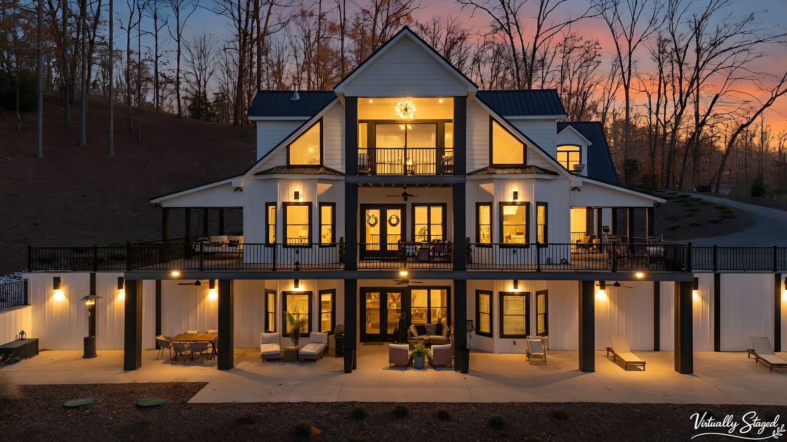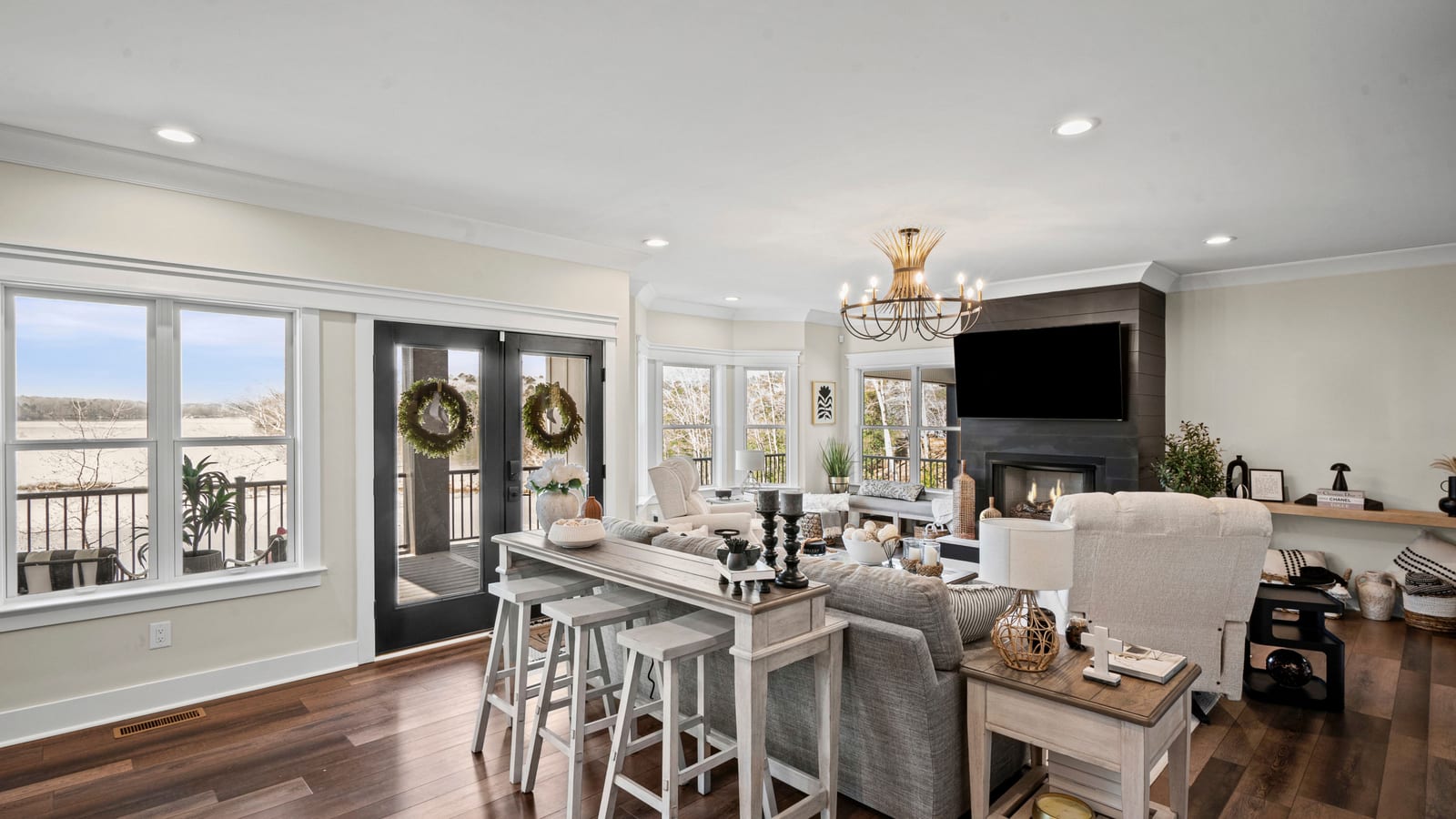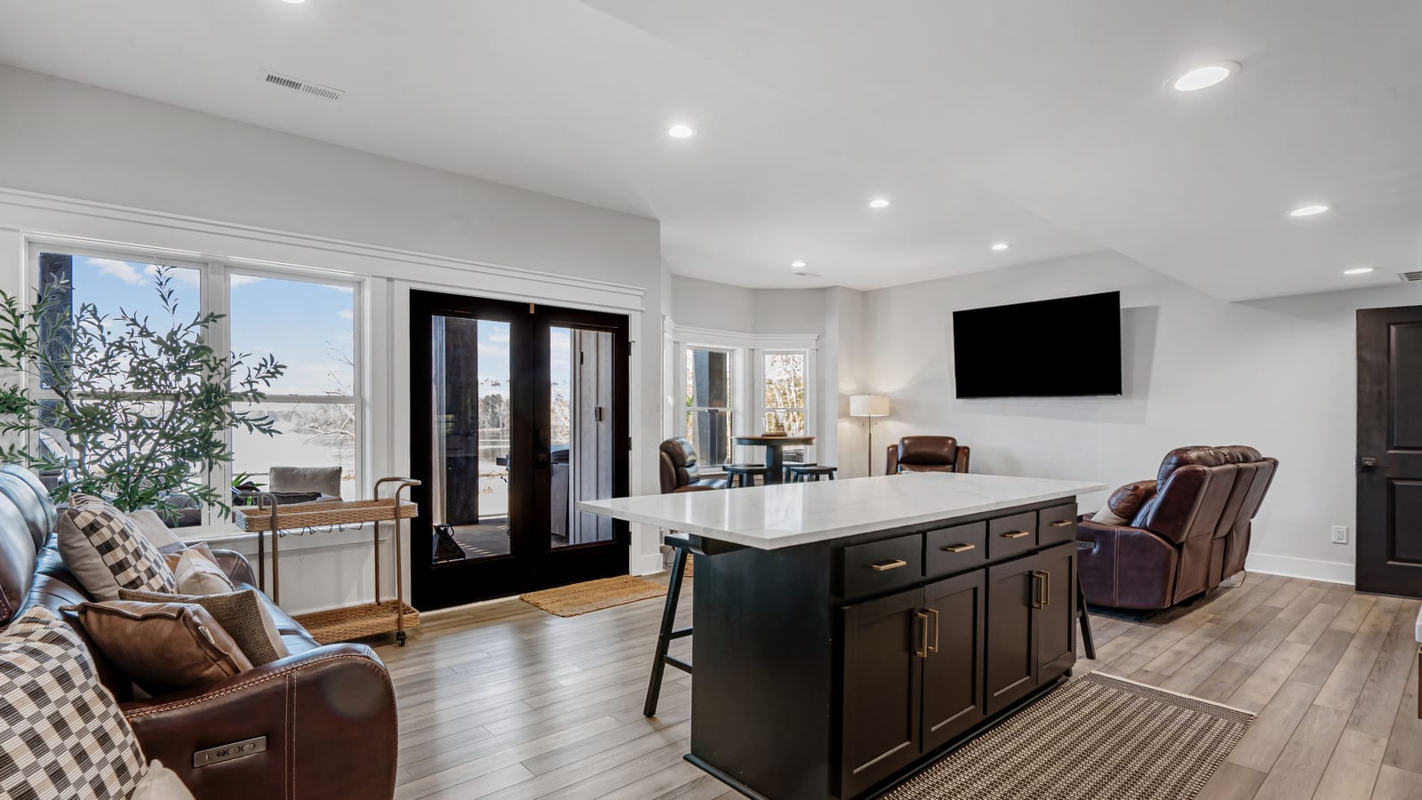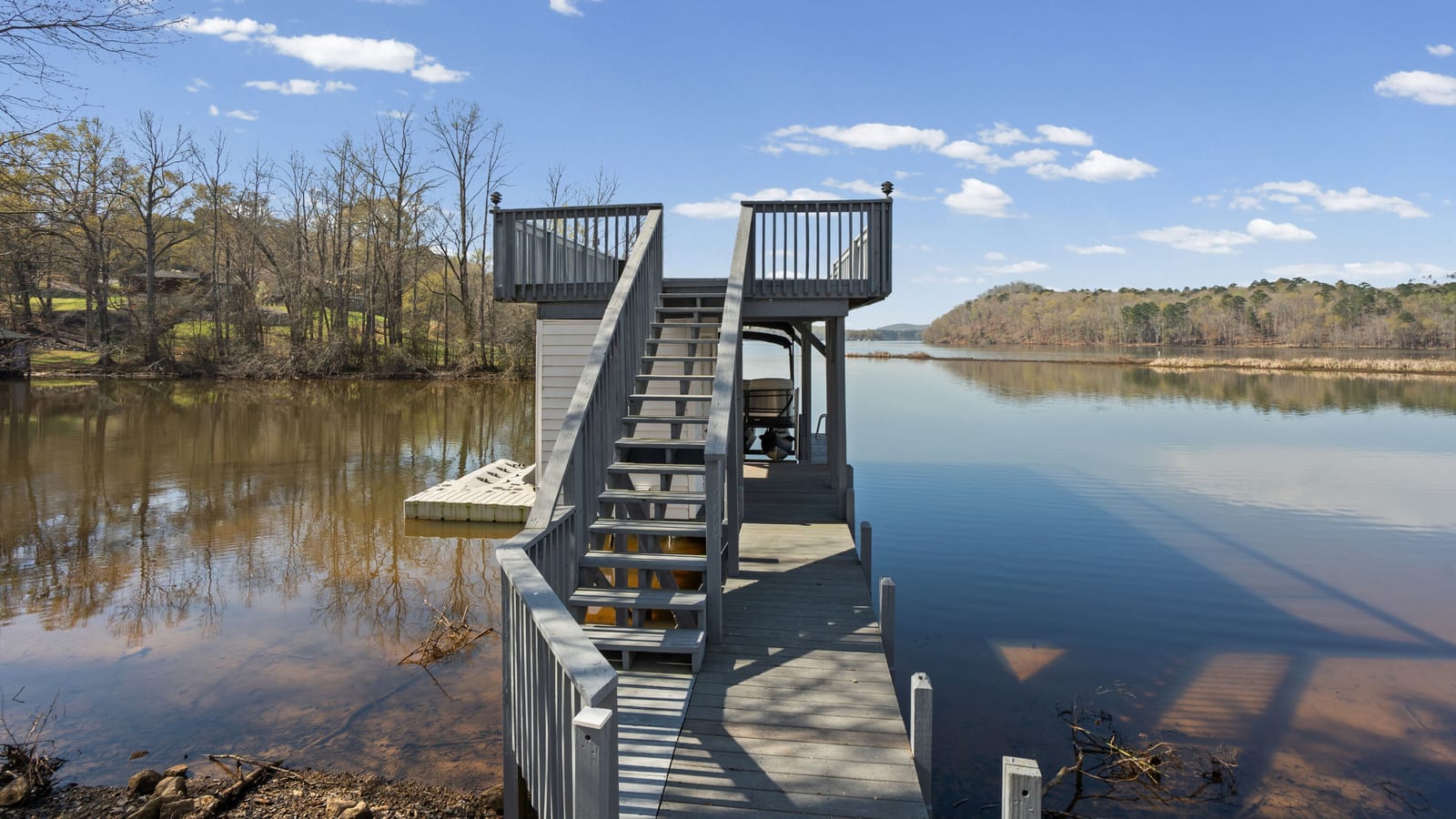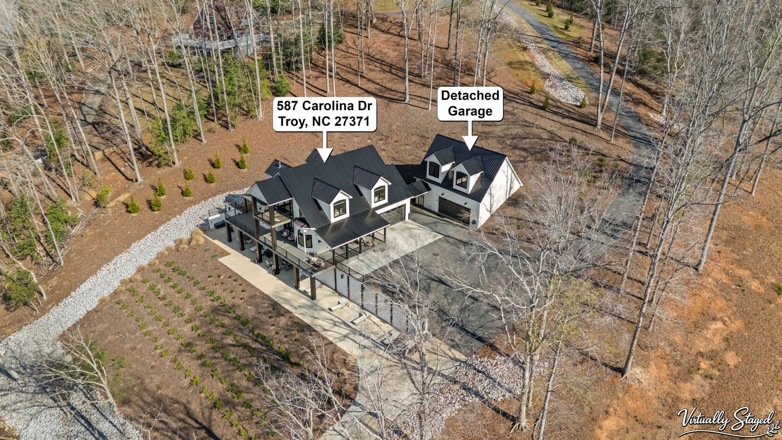 Set along the shoreline of Lake Tillery, this 3-bedroom, 3-bath custom-built residence (2024) offers 3,362 square feet of refined living on 1.43 private acres, where architecture and setting come together to create a truly striking waterfront retreat. Clean lines, curated finishes, and expansive glass frame uninterrupted lake views, bringing natural light into every level of the home. Designed for both everyday living and entertaining, the open layout flows effortlessly onto spacious covered porches and outdoor living areas that overlook the water. The kitchen blends form and function with sleek quartz surfaces, custom cabinetry, and premium appliances, while thoughtfully selected details carry throughout the home for a cohesive, high-end aesthetic. The primary suite is designed as a private escape, featuring a spacious layout and a spa-style bath with elevated finishes and a modern, tranquil feel. The lower level expands the living space with a fully finished area ideal for entertaining, complete with a custom bar and direct access to the outdoors. A private dock extends your living experience onto the water, making it easy to enjoy everything Lake Tillery has to offer. The surrounding landscape provides a peaceful, natural backdrop with long-range views that change beautifully with the seasons. A distinctive, newly constructed waterfront home offering a rare combination of design, setting, and lifestyle.