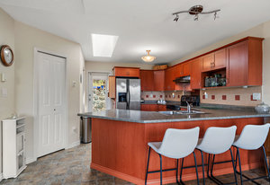 Welcome to Glacier Ridge, a lovely private road offering a peaceful & serene living space. The spacious livingroom has vaulted ceilings & a stunning view of white-capped mountains. The kitchen is a chef’s delight, equipped with S/S appliances, an eating bar & inline dining area. The upper level has 2 beds, lower has a flexible 3rd bed/ office. With a neighbour on only one side enjoy the totally private back patio protected by Arbutus, Palm & Oak trees providing a beautiful and tranquil setting. Additional highlights include an attached single garage, recently refreshed roof, a huge 250 sq. ft. crawl space & on-demand HWT. Conveniently located close to walking trails, ...