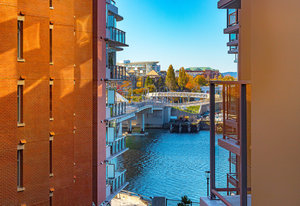 PRICED TO SELL! $33,000 UNDER ASSESSED VALUE! Calling all pet lovers! Welcome to the waterfront Pearl Residences in the heart of downtown Victoria! This 2023 built steel and concrete building ticks all the boxes! Pet Friendly–up to 3 cats or dogs (no size restrictions),rentals welcome,central air heating AND cooling,radiant floor heating (bathroom) and secure underground parking and storage. Enjoy the natural light pouring into this 1bd,1bth (606sqft) home with 9ft ceilings, plus a private patio overlooking the ever-active inner harbour and Johnson Street Bridge! Features include a separate laundry room,walk-in shower,large quartz island with cook top,and plenty of storage. The building offers a fitness facility, community room with kitchen and gardens,wheelchair accessible ramp,3 elevators,EV chargers and bike storage. All this in a thriving location with amazing walking paths to explore with Fido,next to cool downtown shops,restaurants,coffee shops, nd the historical Chinatown!