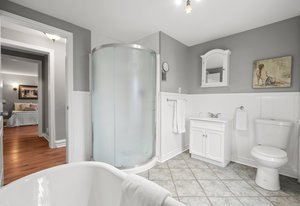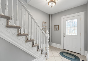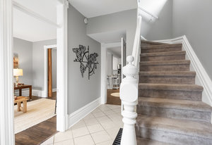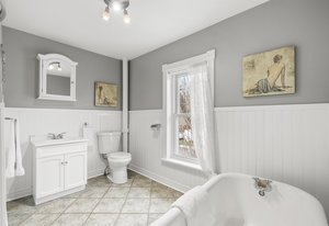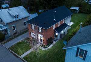 Welcome to 61 Charles Street in the heart of Downtown Carleton Place. This charming century home features 3 bedrooms plus a bonus room off the primary bedroom, perfect for a nursery or home office. The red brick exterior with black shutters and stately front door offers timeless curb appeal. Inside, you'll find a bright eat-in kitchen with an island, breakfast bar, gas range, and subway tile backsplash. Charming pocket doors lead to the front living room, while a massive family room at the back provides great additional living space. Off the kitchen and accessible from the exterior side door, you will love the mud room with storage and an additional bathroom. Upstairs, the primary suite offers a rare walk-in closet and spacious ensuite with a soaker tub, shower, and double vanity. Two additional bedrooms and another full bathroom complete the second floor. Step outside to a private backyard with slider access. 2011 Furnace and A/C; The roof was replaced in November 2024. Just a short walk to downtown cafés, restaurants, and parks is small-town living at its finest. The roof was replaced in November 2024.
