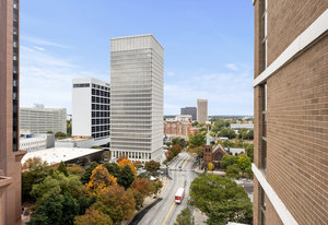 HIGHLY MOTIVATED SELLER!!! Incredible end unit condo in prime Midtown Atlanta! Located one block from the Fabulous Fox Theatre, across the street from Emory, steps away from Ga Tech and Marta, Piedmont Park and 100's of restaurants within walking distance! This home has been completely renovated and features an updated kitchen with stainless appliances, granite countertops and tile backsplash. Both baths have been renovated as well. Both bedrooms are large, and there is an additional office area and family room. New LVP flooring throughout. As an End Unit this gives this property amazing natural light and a dedicated private balcony overlooking both an incredible sunrise and sunset and wonderful city views from every direction! Magnificent amenities in the building are located on the mezzanine level. Amenities include freshly updated club room (can be reserved for private parties), billiard room with bar, business center, conference room, gym, outdoor pool and laundry facilities. There is 24 hour concierge/security and gated parking. This home comes with 1 assigned parking space. Additional space can be secured for nominal fee. HOA covers water, trash, pest control, natural gas and amenities. This is a perfect opportunity for a first time home buyer, investor, Ga Tech student or empty nester seeking a convenient stress-free life style!