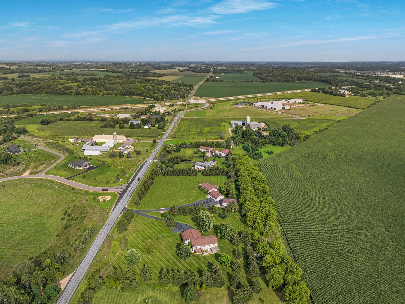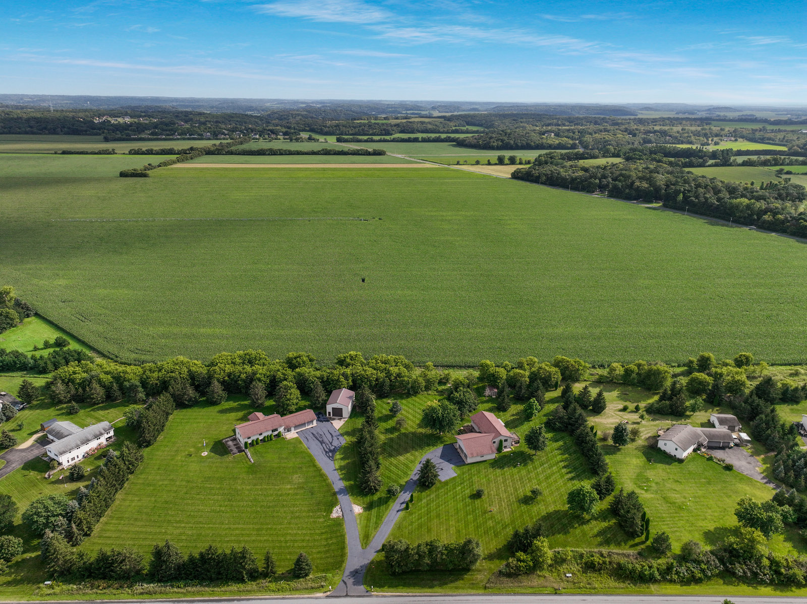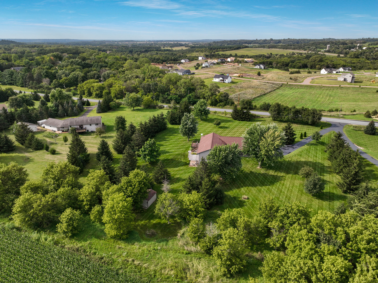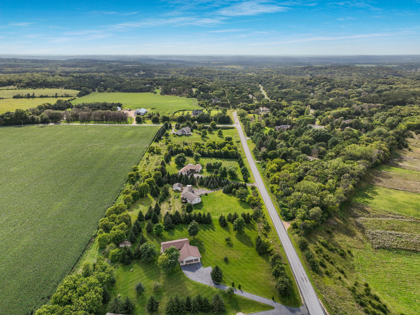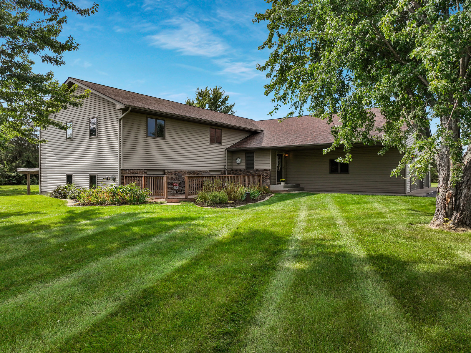 Terrific 4 BR, 3 BA home on almost 2, park-like acres in Troy Township! Enjoy convenience and comfort everywhere you go: a spacious foyer to welcome guests; open concept main-floor living that walks out to outdoor recreational spaces; a kitchen with lovely and easy-to-clean marble countertops and tile floors; 3 BR on the main level, including the primary with en suite bathroom; a handy main-floor laundry; a huge, lower-level family room with pellet/corn stove, wet bar, and walkout; a lower level 4th BR and office; and storage galore, even an outdoor storage shed! Outdoor entertainment spaces abound: large, newly stained deck; concrete patio with pergola; and huge front deck offer places to read, relax, grill or party—whatever the mood or occasion merits! Fantastic, oversized 3-car garage with a large overhang is insulated and heated with a second pellet stove and has plenty of room for work and play! Close to Hudson and the Twin Cities, this property is peaceful and private, with gorgeous evergreens, perennials, and a lovely yard with plenty of open space for gardens, fun and games! This home truly has something for everyone!