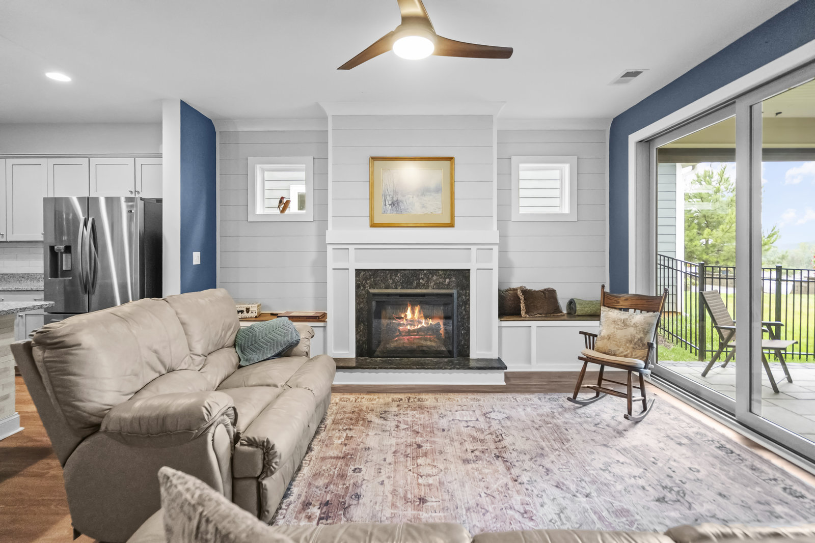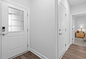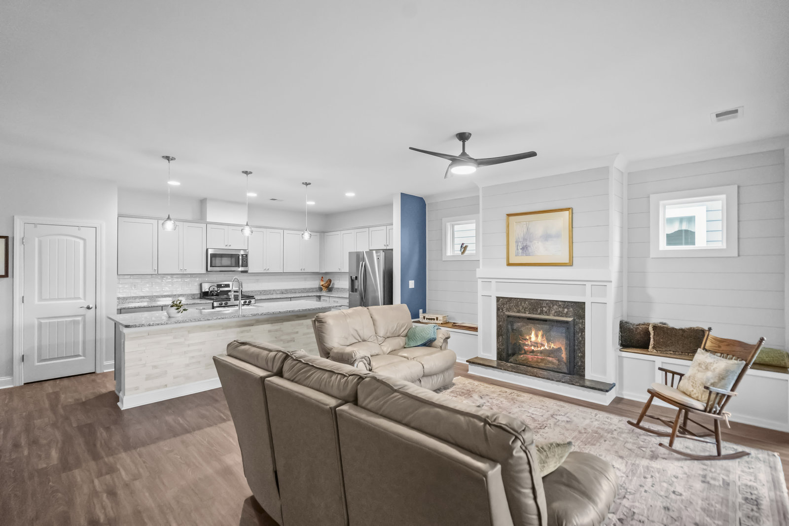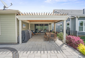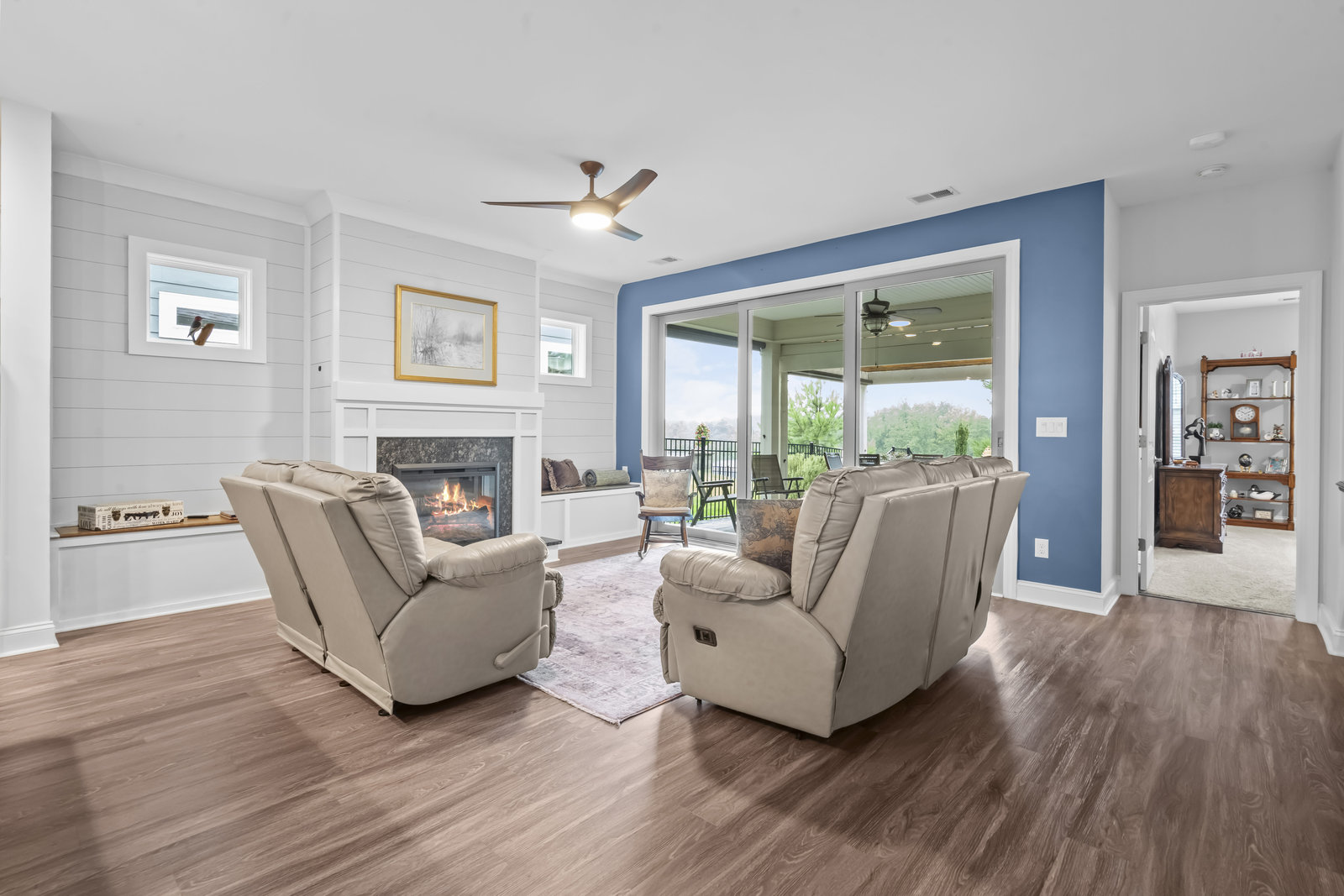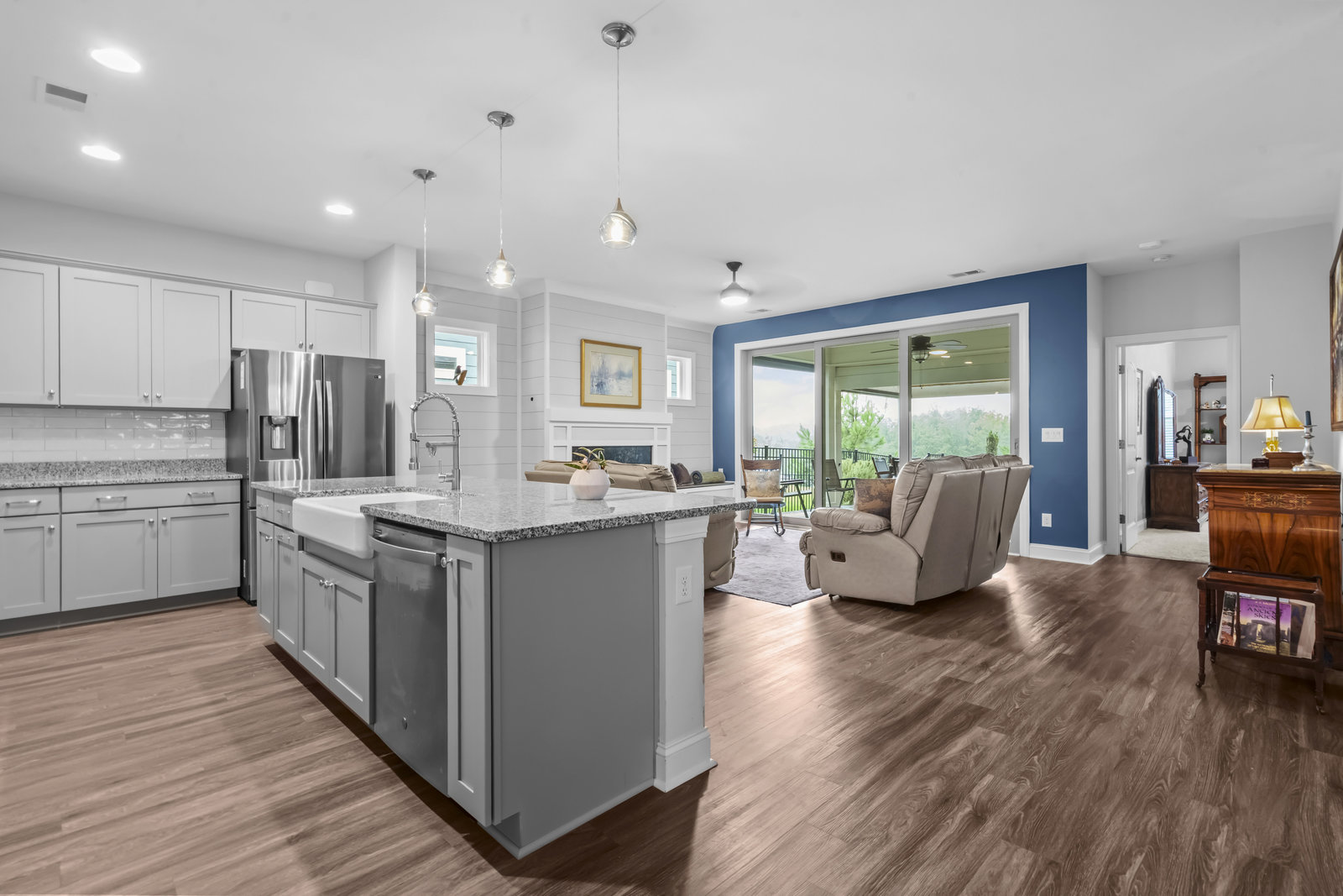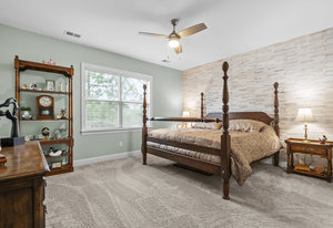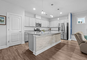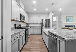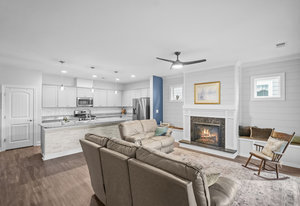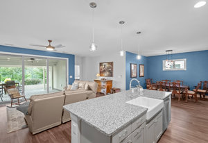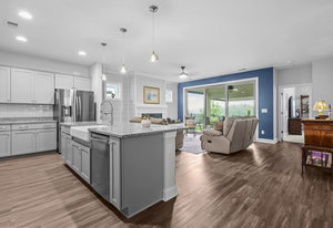 Open-concept Glory plan on a premium lot with long range unobstructed sunset views. Split 2BR, 2B plus flex space with custom bar area to entertain. Well-appointed kitchen anchors the main living area & includes SS appliances, gas range, farm sink, solid surface countertops, pendant lighting, light craftsman style cabinetry w/soft close drawers, tile back splash and island breakfast bar. Adjoining great room with fireplace accented by built in window seating and wall of glass that opens to a peaceful lanai with sun/privacy shades, pergola and extended paver patio for additional entertaining options. A serene master suite completes this home & ensuite bath with dual sink vanity, tile floor and a generous walk-in custom closet & tiled shower. Low maintenance LVP and tile flooring (carpeted bedrooms) Large laundry room with additional storage. Attached 2 Car garage for additional storage options. Trilogy Membership includes Freedom Boat Club on Lake Norman plus award winning amenities.