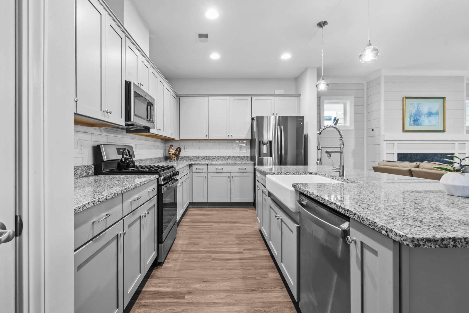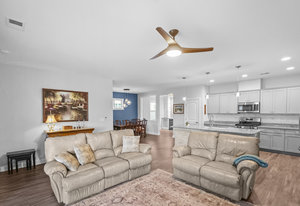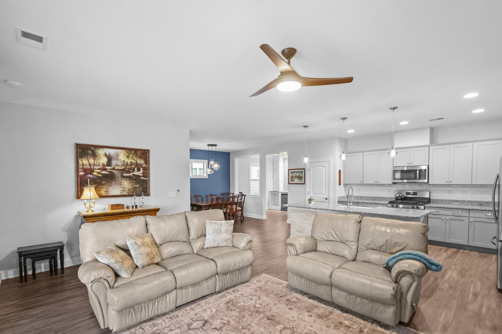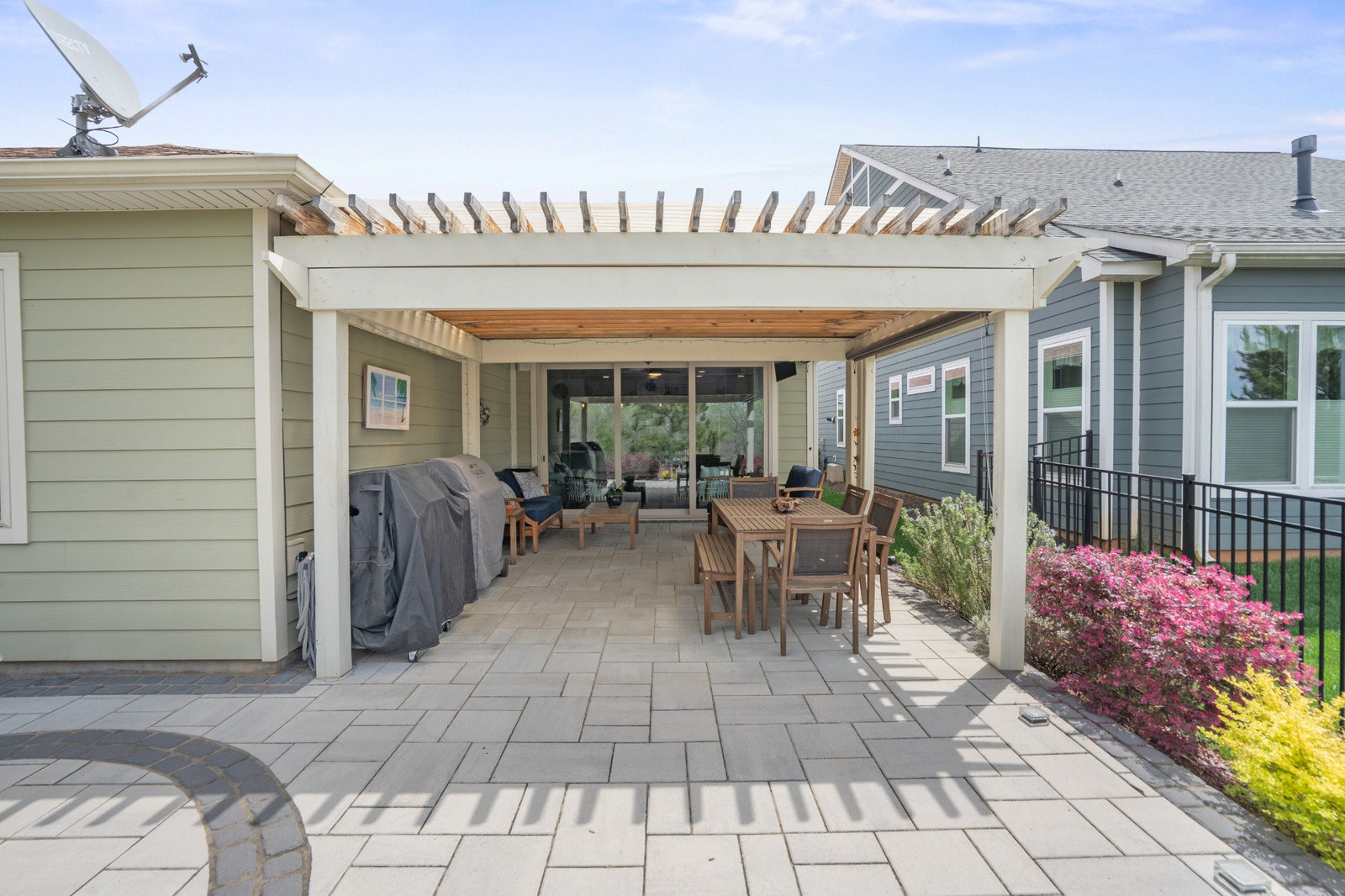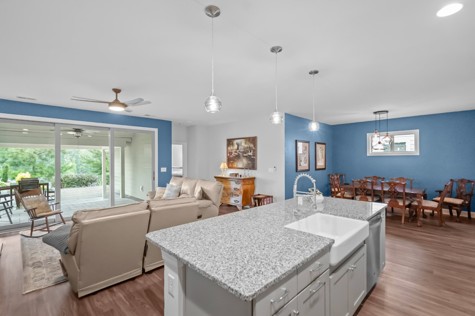 Open-concept Glory plan on a premium lot with long range unobstructed sunset views. Split 2BR, 2B plus flex space with custom bar area to entertain. Well-appointed kitchen anchors the main living area & includes SS appliances, gas range, farm sink, solid surface countertops, pendant lighting, light craftsman style cabinetry w/soft close drawers, tile back splash and island breakfast bar. Adjoining great room with fireplace accented by built in window seating and wall of glass that opens to a peaceful lanai with sun/privacy shades, pergola and extended paver patio for additional entertaining options. A serene master suite completes this home & ensuite bath with dual sink vanity, tile floor and a generous walk-in custom closet & tiled shower. Low maintenance LVP and tile flooring (carpeted bedrooms) Large laundry room with additional storage. Attached 2 Car garage for additional storage options. Trilogy Membership includes Freedom Boat Club on Lake Norman plus award winning amenities.
