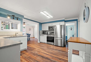This beautifully renovated 4 bedroom, 2 bath home in the perfect location on a large 0.21 acre lot in Lake Cowichan is only steps to the park and river for tubing and the Annual Duck Pond. It's tastefully finished with a brand new kitchen and bathrooms, new floors throughout, new appliances, interior and exterior paint, updated electrical and even new vinyl windows, showing impressive attention to detail. There is a covered deck and patio off the dining room, and the back patio is wired for a hot tub, making it perfect for entertaining. The downstairs has a separate entrance, bedroom, mud room, bathroom and lots of space for extra storage or to convert to an in-law suite. ...